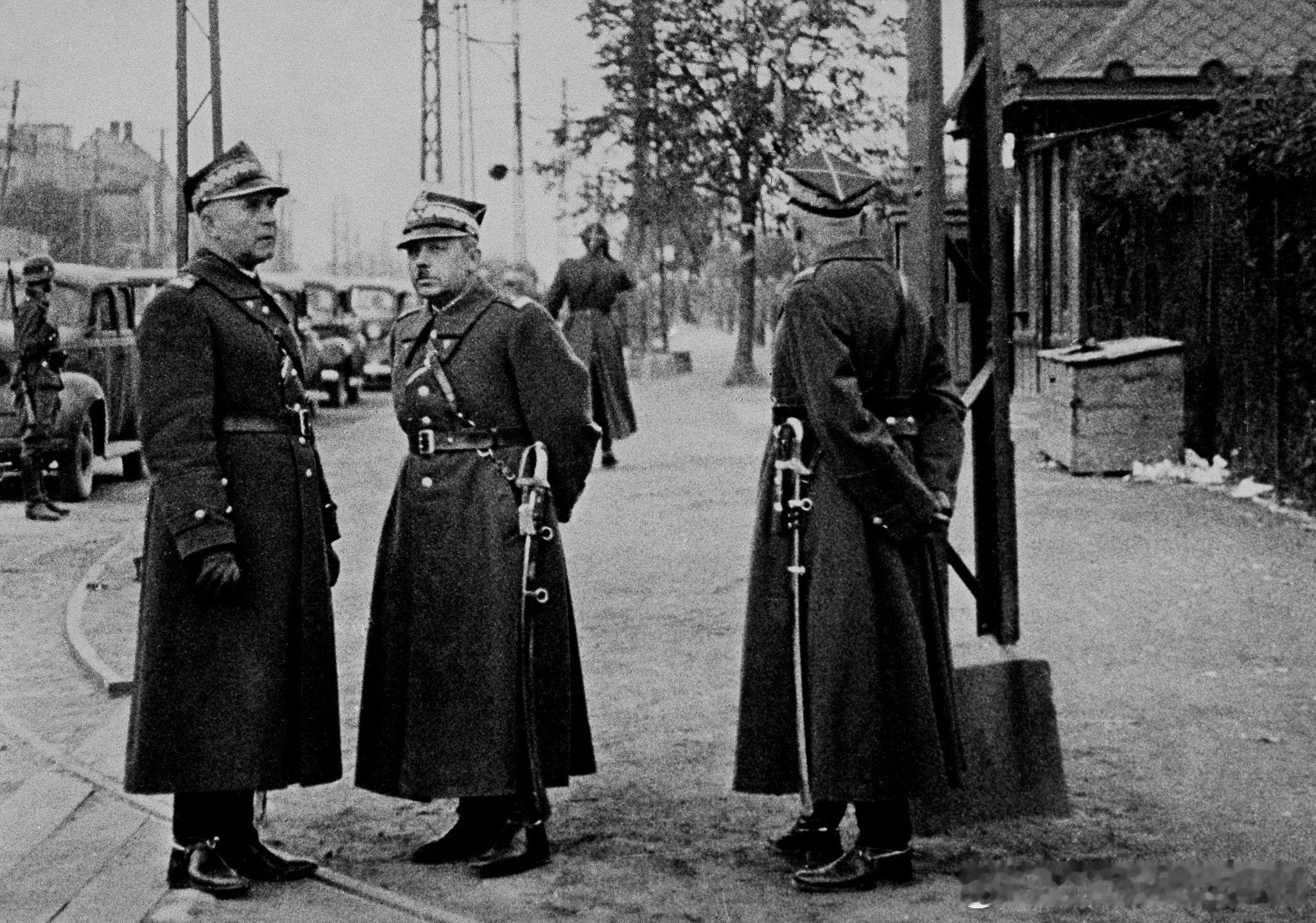 1939年9月27日华沙市驻军投降前,波兰军官在华沙的街道上。一名德国士兵和一列参谋车靠近照片左侧军事历史全触达