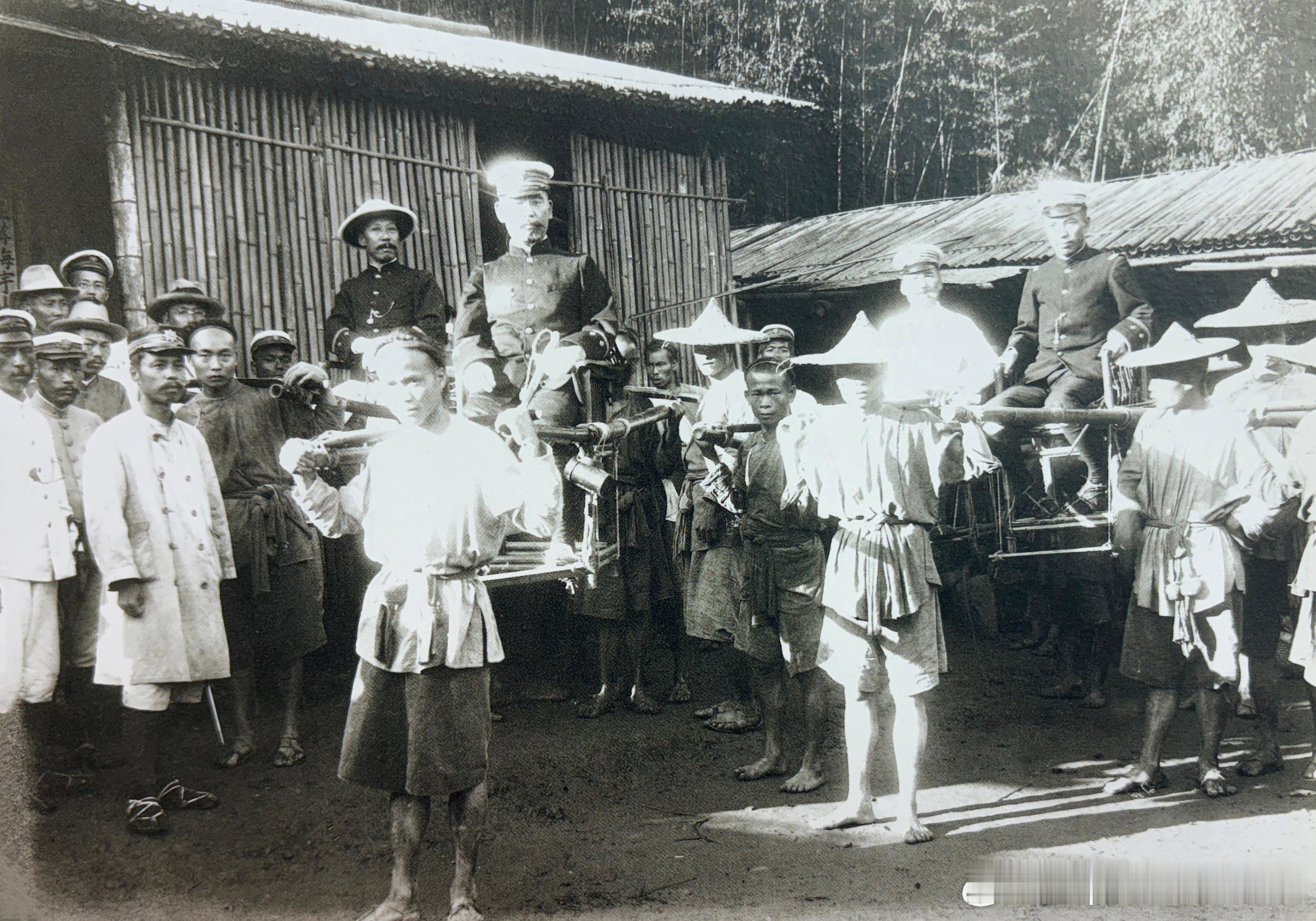 日据台湾时期,日本“总督府”警官巡视台湾山区。警官高高在上地端坐轿中,满脸傲然,
