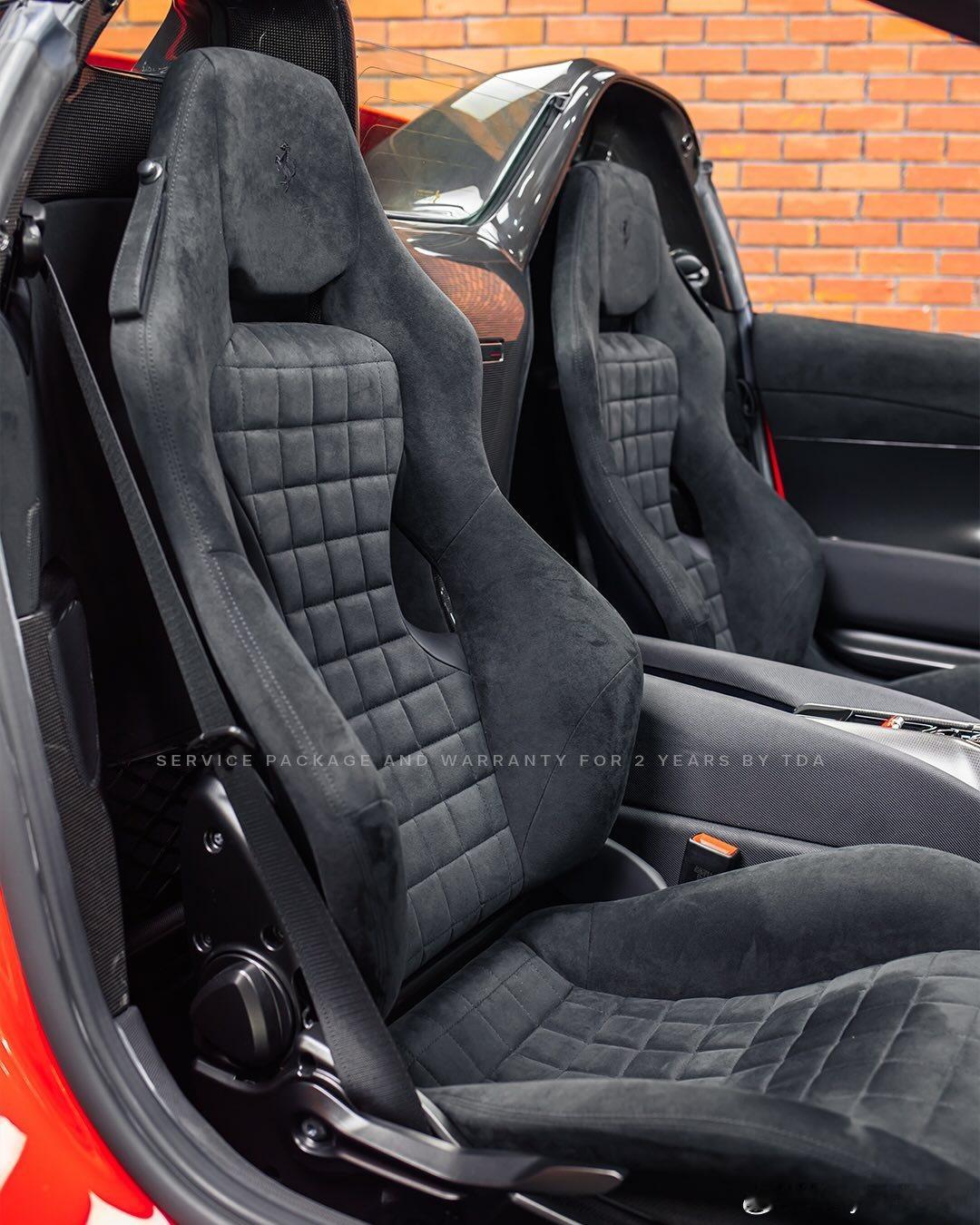 外观配色为Rosso Scuderia,没有选择赛车拉花,外观方面选配饿了哑光黑色的赛车轮毂,内饰方面,复古赛车座椅为Nero Alcantara。交付于位于中国香港的Blackbird Concessionaires,这台车基本在香港没有留下任何痕迹,如今被印度尼西亚的TDA Luxury Auto完成了出口.图片来自