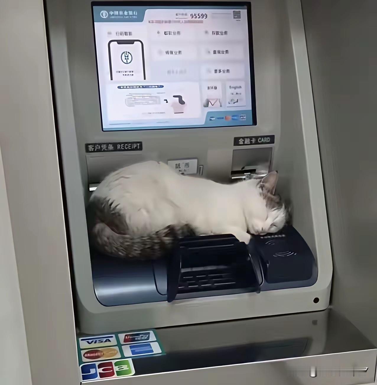 别吵!取款机上的猫在睡觉 东北冬夜,零下二十多度。 男子走进自助银行,准备取钱,却撞见了一只正在“值班”的猫咪。 小家伙不大,刚好能蜷在取款机上,睡得昏天黑地,完全没把来人放在眼里。 这是这家银行唯一的取款机,最近的网点还在800米外。 男子站在门口,看了看熟睡的猫,又看了看外面的寒风,没多想,转身就走。 “大冷天的,就让它睡个好觉吧。” 有时候,善良真的不需要什么理由,只是不忍心打扰一场寒冬里的好梦。