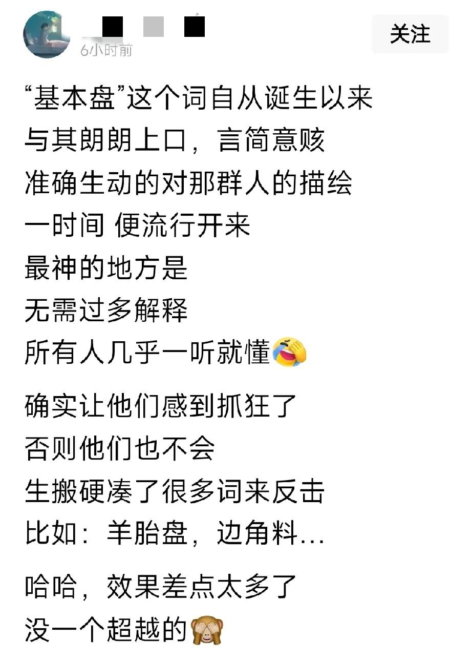 不知道什么时候突然冒出一批人来嘲讽所谓的基本盘,在这些人的思维里基本盘就是一个贬义。 但如果深究起来做基本盘有什么不好呢? 所谓的基本盘这个词来源于台湾岛内的蓝绿恶斗。 但在咱们这里不存在什么党争,所以做为一个占比全国90%以上的人群就应该是国家的基本盘,难道要去对比西雅图冰雨夜里下水道里的蛆虫你才高兴吗? 那些动不动喜欢给人戴基本盘帽子的人大抵就是一些反串罢了。