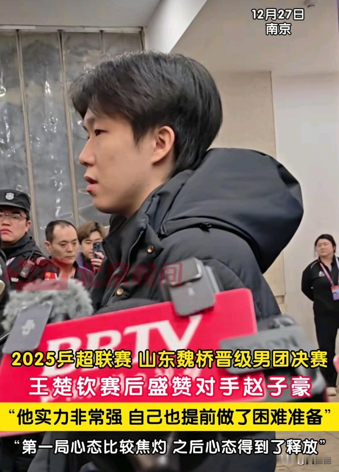原来帽子反了是男人的标配,王楚钦在2025乒超联赛的赛后采访里,把这个“标配”演绎得格外真实。南京的赛后采访现场,他穿着黑色外套,外套的帽子却意外反扣在头上,看样子是自己全程都没发现帽子戴反了,这份无心的小迷糊瞬间戳中笑点。 刚带领山东魏桥晋级男团决赛的他,赛场上还是那个球风凌厉、思路清晰的顶尖选手,谈起对手赵子豪,还认真坦言对方实力强劲,自己赛前做了困难准备,第一局也因心态焦灼打得不顺,后面才调整过来。 赛场之上的霸气选手,赛场之下却因为反戴帽子多了份接地气的可爱,这种反差感,也让球迷觉得这个乒乓小将更鲜活了。