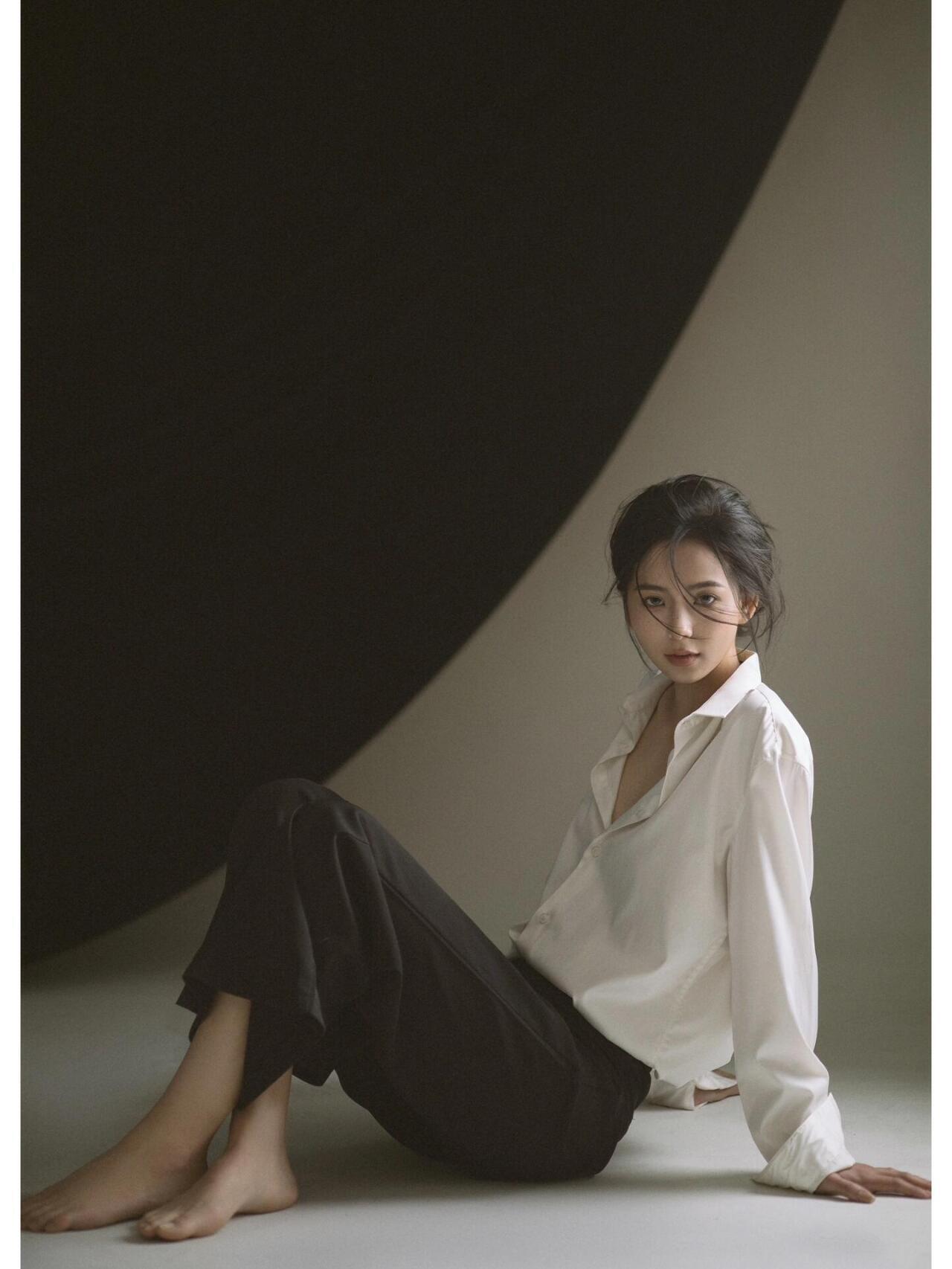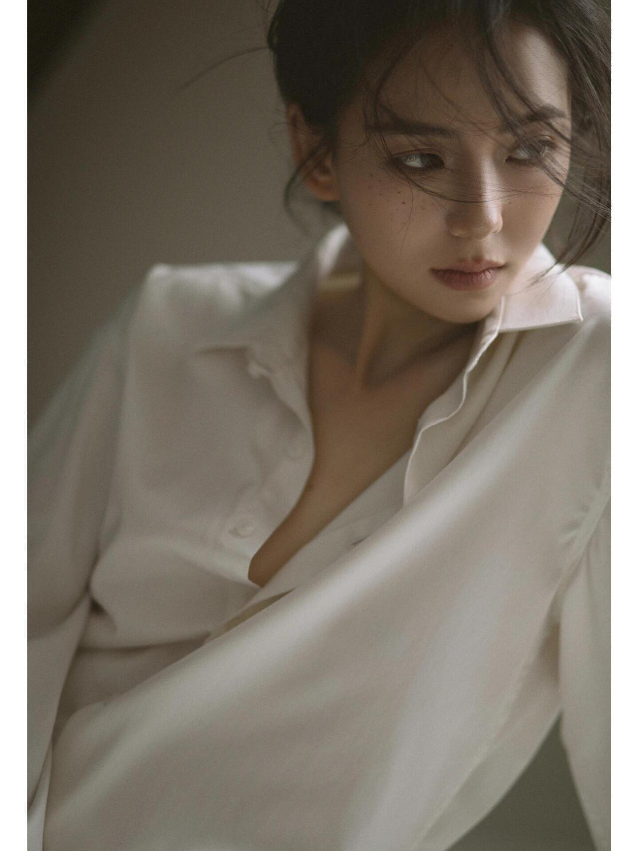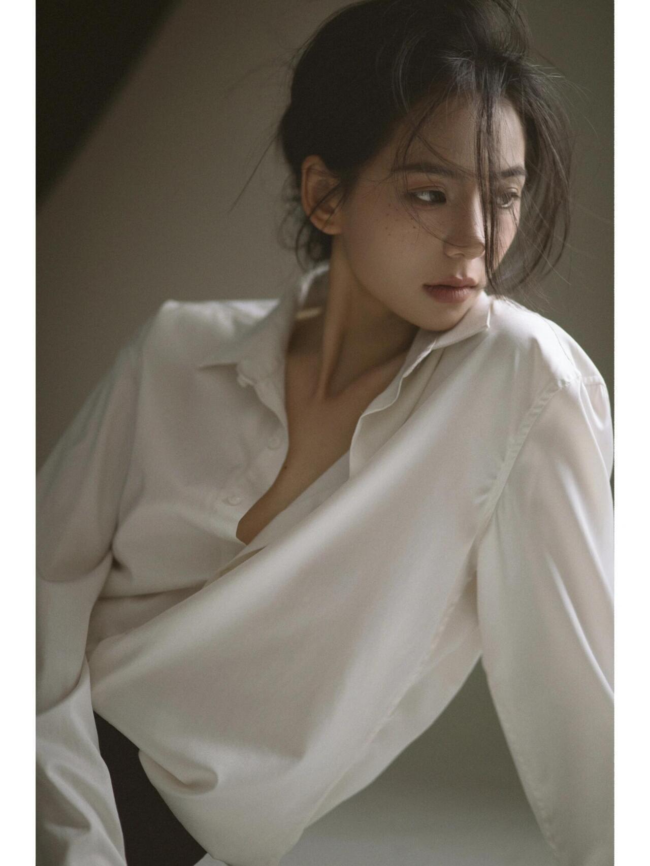 这组人像在色彩与质感的结合上颇具巧思,以黑白灰的低饱和色调构建画面,白衬衫的米白色调在灯光下呈现出温润的质感,与背景的深黑形成柔和的色彩对比,避免了纯黑白的冰冷感。皮肤的自然肤色在光影中与衬衫的质感相融合,通过光影的明暗对比突出了人物的面部轮廓与颈部线条,让简约的造型产生丰富的视觉层次。 不足在于,部分画面的色彩明度稍显不均,人物面部的光线略强于身体部分,若能通过反光板补光让整体明度更统一,质感的呈现会更协调。同时,配饰的缺失虽符合简约定位,但可尝试加入细项链等极简配饰,在不破坏整体风格的前提下,为画面增添细节亮点,提升视觉记忆点。