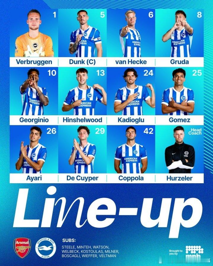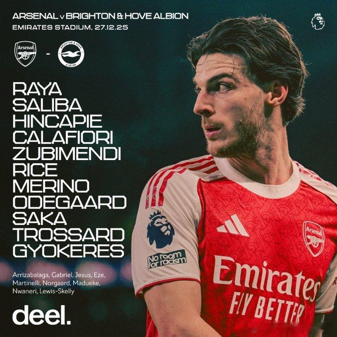 阿森纳vs布莱顿 首发阵容⬇️ 23:00开赛!阿森纳首发:1-拉亚、33-卡拉菲奥里、2-萨利巴、5-因卡皮耶、36-苏比门迪、41-赖斯、23-梅里诺、8-厄德高、7-萨卡、19-特罗萨德、14-哲凯赖什布莱顿首发:1-维尔布鲁根、5-邓克、6-范赫克、8-格鲁达、10-鲁特尔、13-辛谢尔伍德、24-卡迪奥卢、25-迭戈·戈麦斯、26-阿亚里、29-德屈佩、42-库博拉英超联赛