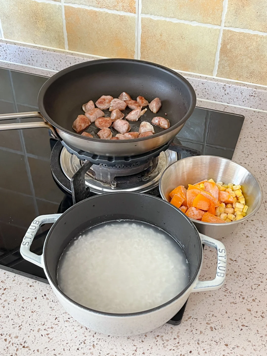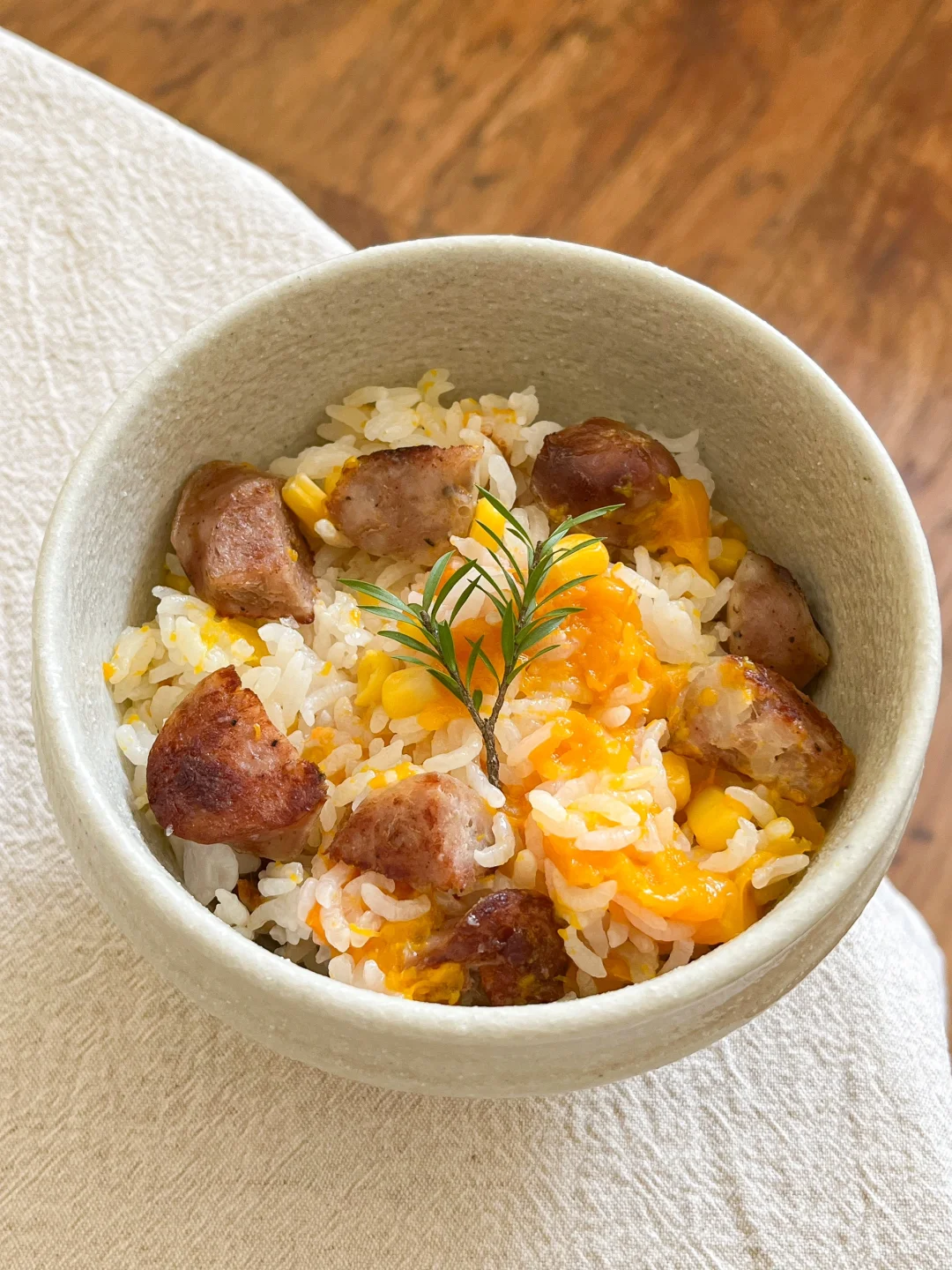 米粒吸满了南瓜的香甜和肉肠的油脂香