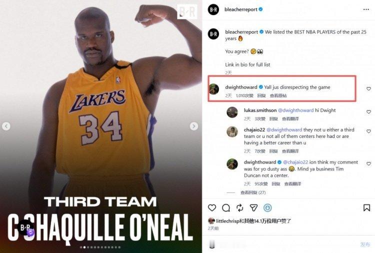 ➡确实,我觉得一阵奥胖中锋邓肯大前,库里科比控卫分位,小前随意,给kd吧BR评本世纪最佳阵容!霍华德现身评论区:你们都不尊重这项运动露天看台评选出了本21世纪最佳阵容一二三阵(00-01赛季至今),奥尼尔仅排在最佳三阵中,具体如下:一阵:库里、科比、詹姆斯、杜兰特、邓肯。二阵:保罗、韦德、加内特、诺维茨基、约基奇。三阵:纳什、哈登、莱昂纳德、字母哥、奥尼尔。霍华德现身评论区,并点评道:你们都不尊重这项运动!