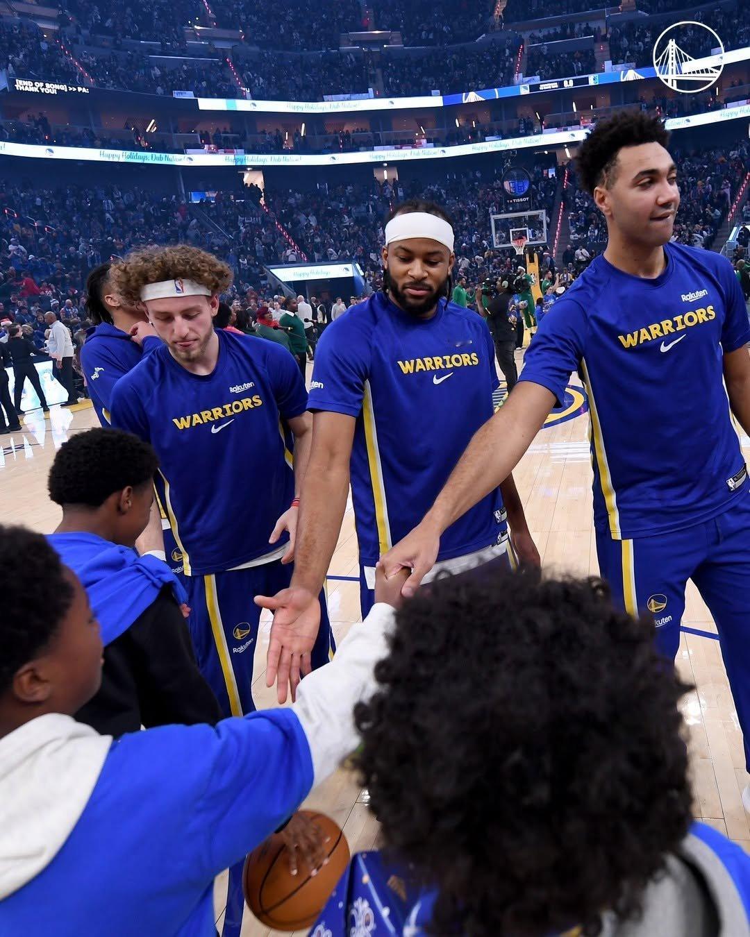 真有爱啊勇士队和小牛队与,向来自湾景基督教青年会和伯克哈尔特小学的当地青年赠送了