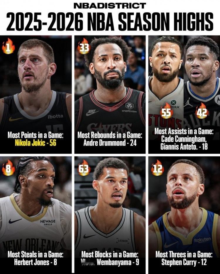 🤔赛季各单项纪录!约老师56分 CC&字母18助 文班亚马9帽 库里12记三分单场最高分:约基奇56分单场最多篮板:德拉蒙德24个单场最多助攻:康宁汉姆&字母哥18次单场最多抢断:赫伯特·琼斯8次单场最多封盖:文班亚马9次单场最多三分:库里12记圣安东尼奥马刺NBA吐槽大会超话创作官