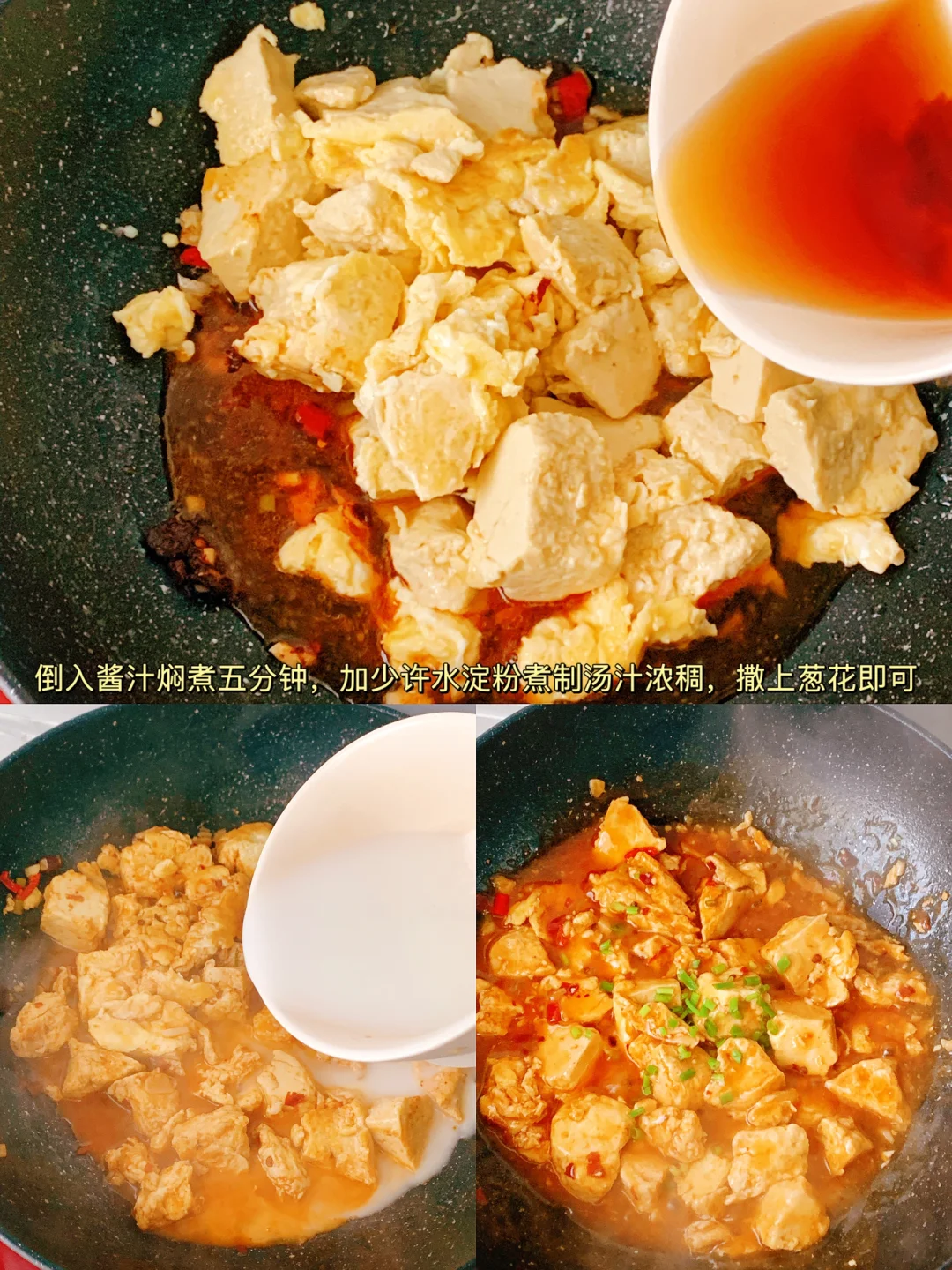 自制低Gi减脂餐,我想让减脂餐更好吃✨✨✨ [飞吻R]hi,又是快乐的一天啊,今日分享 ~~ 【鸡蛋抱豆腐】 食材: 主料:鸡蛋,嫩豆腐 辅料:葱,蒜,小米辣,豆瓣酱,生抽,蚝油,淀粉 [打卡R]做法见图片[打卡R] 酱汁:1勺生抽,1勺蚝油,半勺胡椒粉,适量盐,白糖,半碗水 ❤小提示: [向右R]豆腐放蛋液里用勺子切小块 [私信R][私信R][私信R]做好吃的减脂餐,喜欢请关注,每日更新‼️