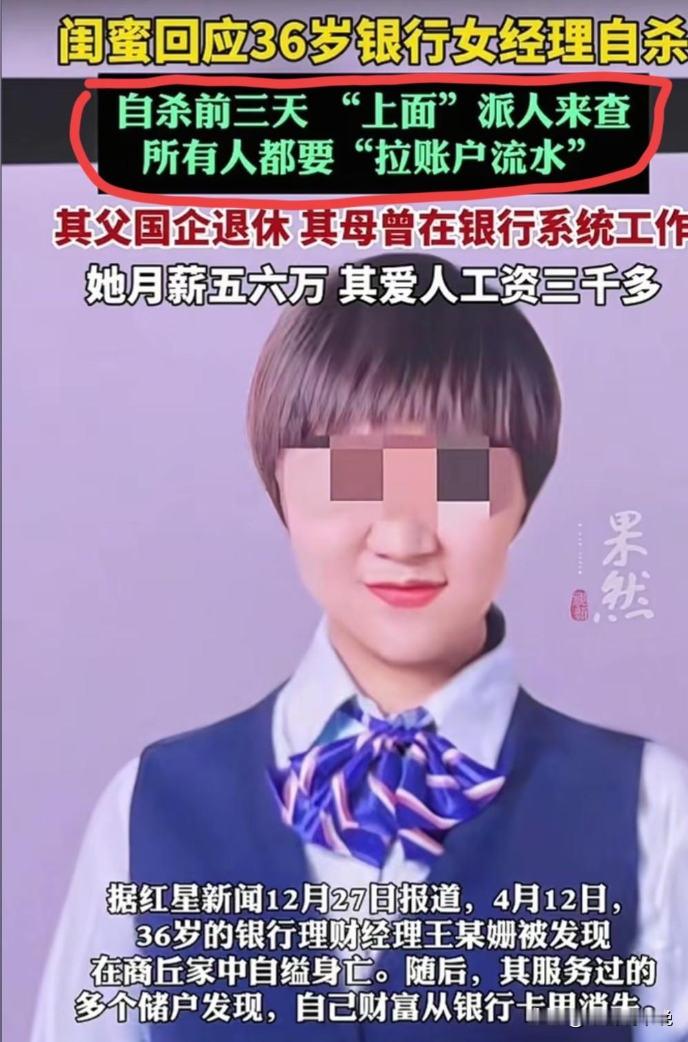 不是不尊重死者 关键“王某姗挪用储户存款”这事太离谱了 首先王某姗的家庭条件可以说比绝大多数人都要好! 她父亲是国企退休,母亲也曾在银行系统工作,而她的丈夫又是在当地街道办工作,这么一看她们一家人的工作都非常好啊,而且王某姗自己跟闺蜜透露过自己的工资情况,她说她客户多,工资每月大概有五六万! 按理说这种家庭经济情况应该没有任何问题才对,然而问题就出在这里,王某姗不仅挪用了多个储户的存款,金额超过一千万,还向几个朋友借了近一千万,加一起这么大金额,王某姗却选择了自杀,而就在她自杀后几个月,她丈夫孟某也自杀了,留下了一个巨大的谜团!大家认为这到底是怎么回事?仅仅是充值游戏和购买豪车这么简单吗?