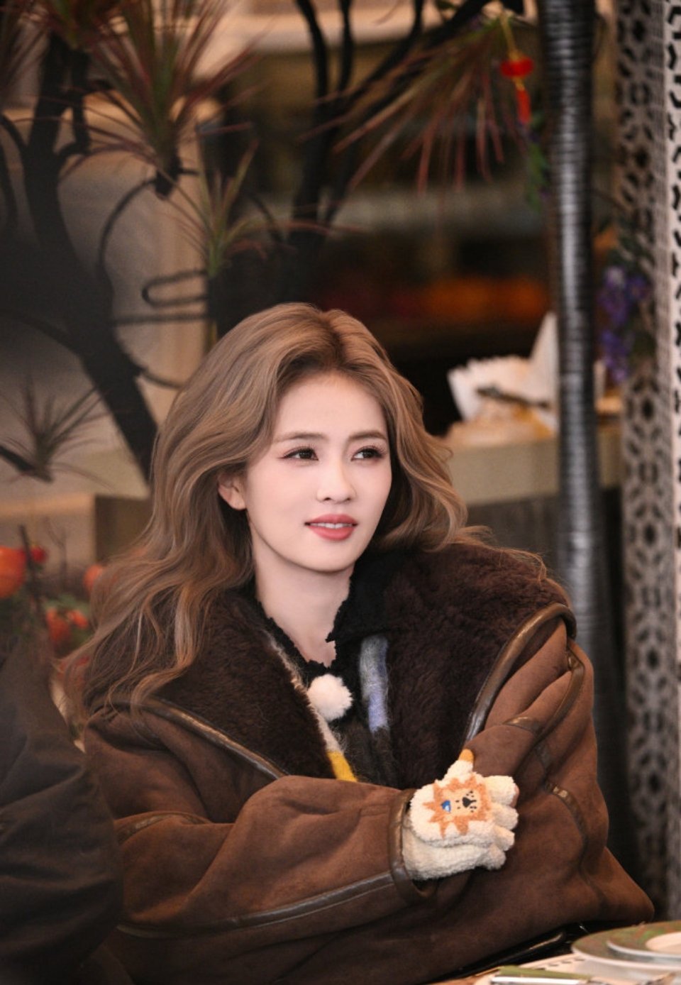 吴艳妮在成都穿着短裤大腿看起来很粗壮,表情自信又张扬
