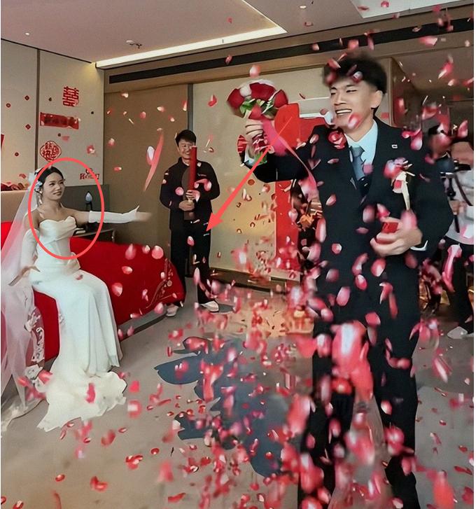新郎在门外焦急的等待,当伴娘团开门的那一刻新郎手举着鲜花飞快的跑了进来,兴奋的朝着伴娘的方向跑去,接近伴娘时单膝下跪准备给伴娘送鲜花拥抱,旁边的伴郎团赶紧提醒新郎:给错人了,新娘在床上!新郎这才反应过来自己犯了这么低级搞笑的错误! 当新郎跑进来时新娘早已张开双臂等待着新郎入怀!没曾想新郎竟然朝着自己的伴娘跑去! 这新娘换作谁都不好受,大喜的日子,自己的男人竟然连自己都认不出来,想想都觉得委屈和心寒!