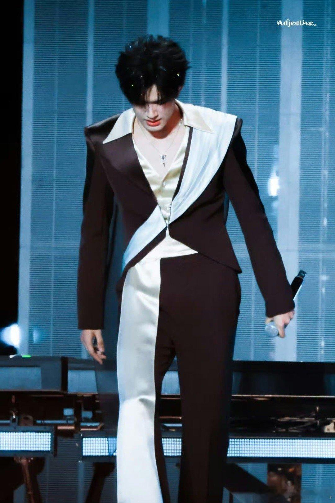 张极丝绸西装完全是daddy级别 舞台上的“daddy感”是一种综合气场。张极用造型、声线、表演三位一体,成功构建了这种迷人氛围。