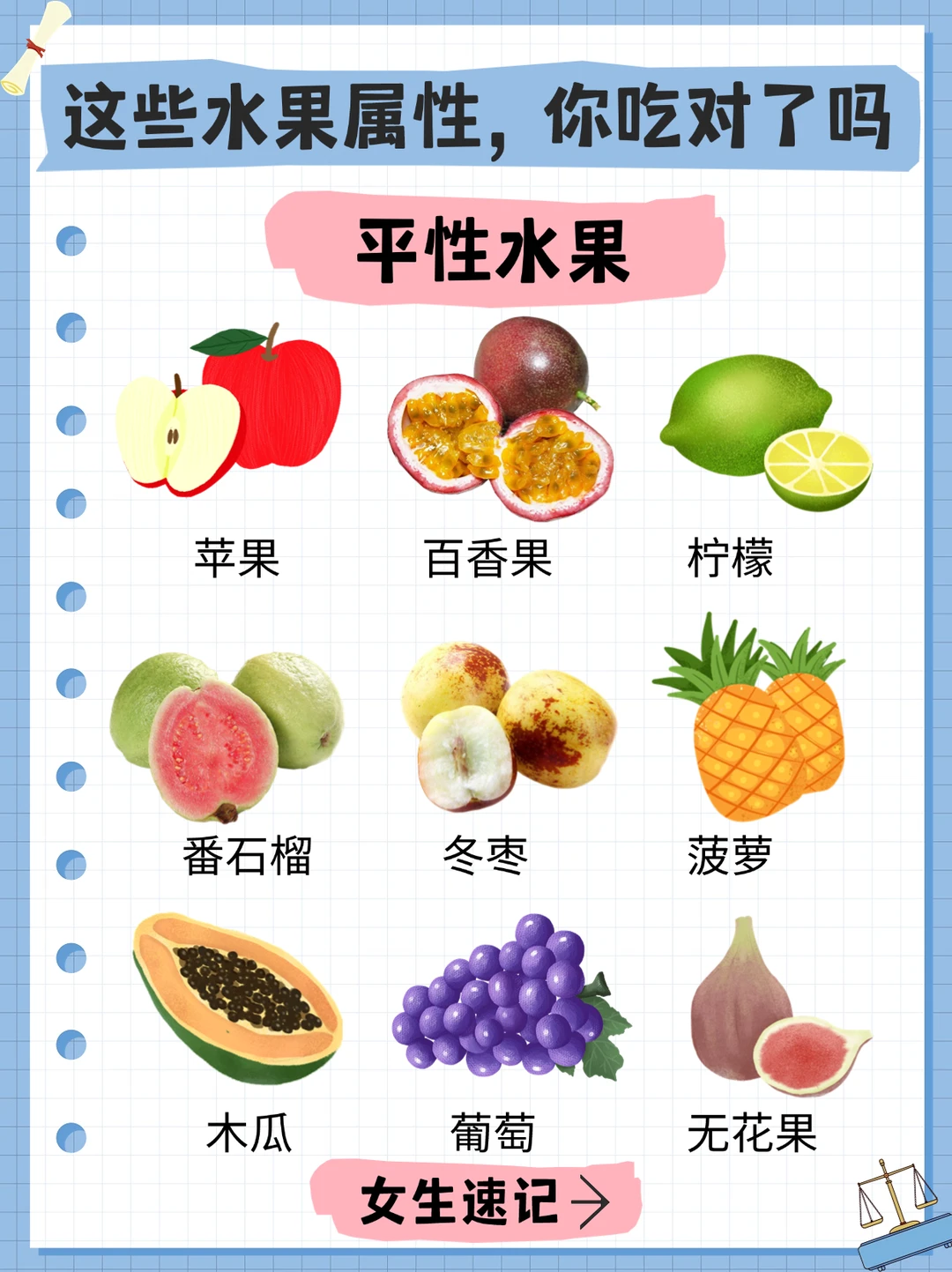🌈 注意事项:这类水果不温不热,不寒也不凉,归属于平性,适合绝大多数人食用。