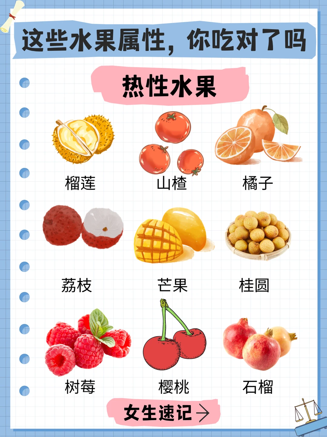【热性水果】榴莲、山楂、橘子、荔枝、芒果、桂圆、树莓、樱桃、石榴