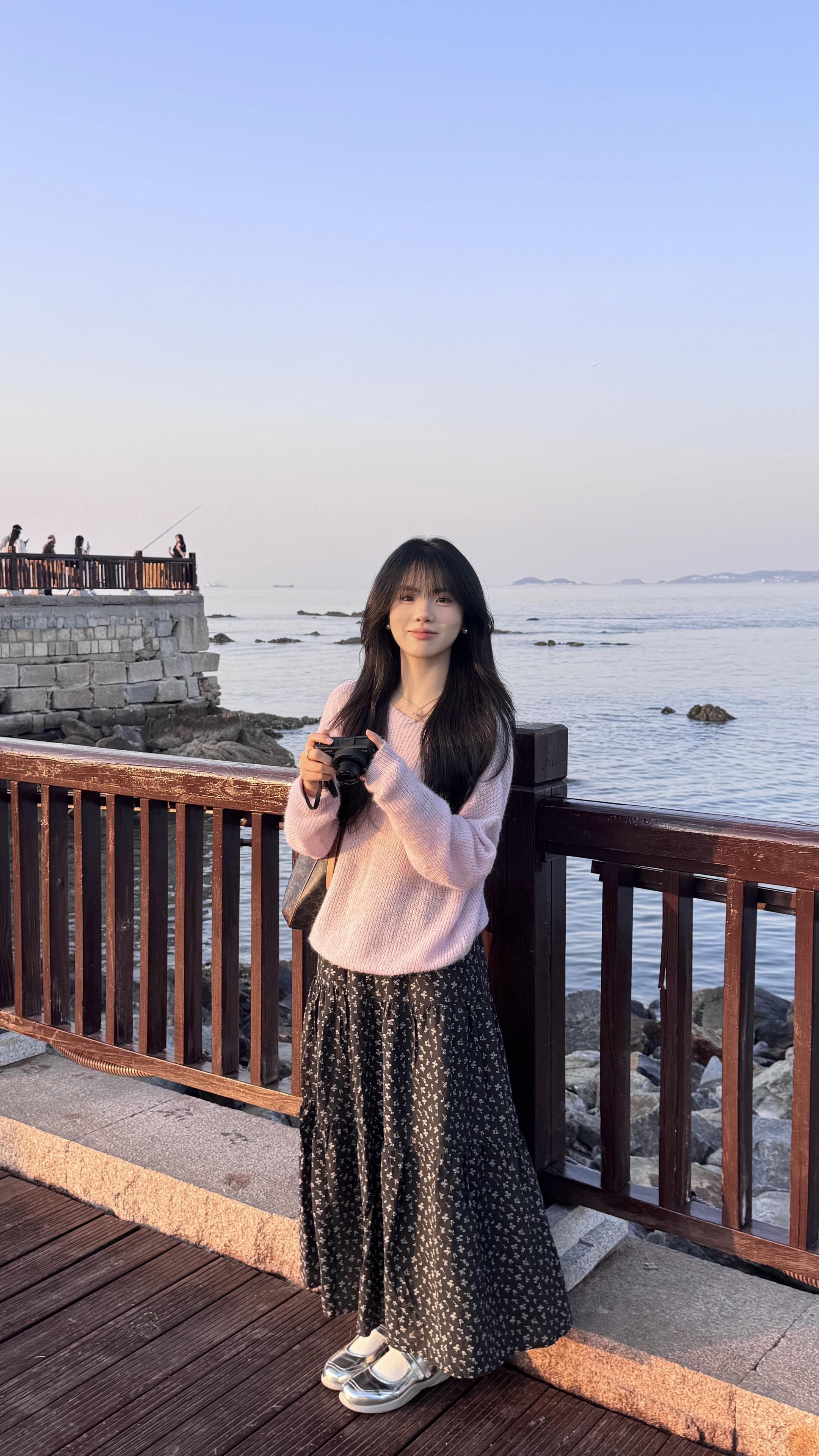 温柔米色连衣裙搭配蕾丝边内搭和针织开衫,简直是优雅气质的代名词!秋季这样穿,时髦