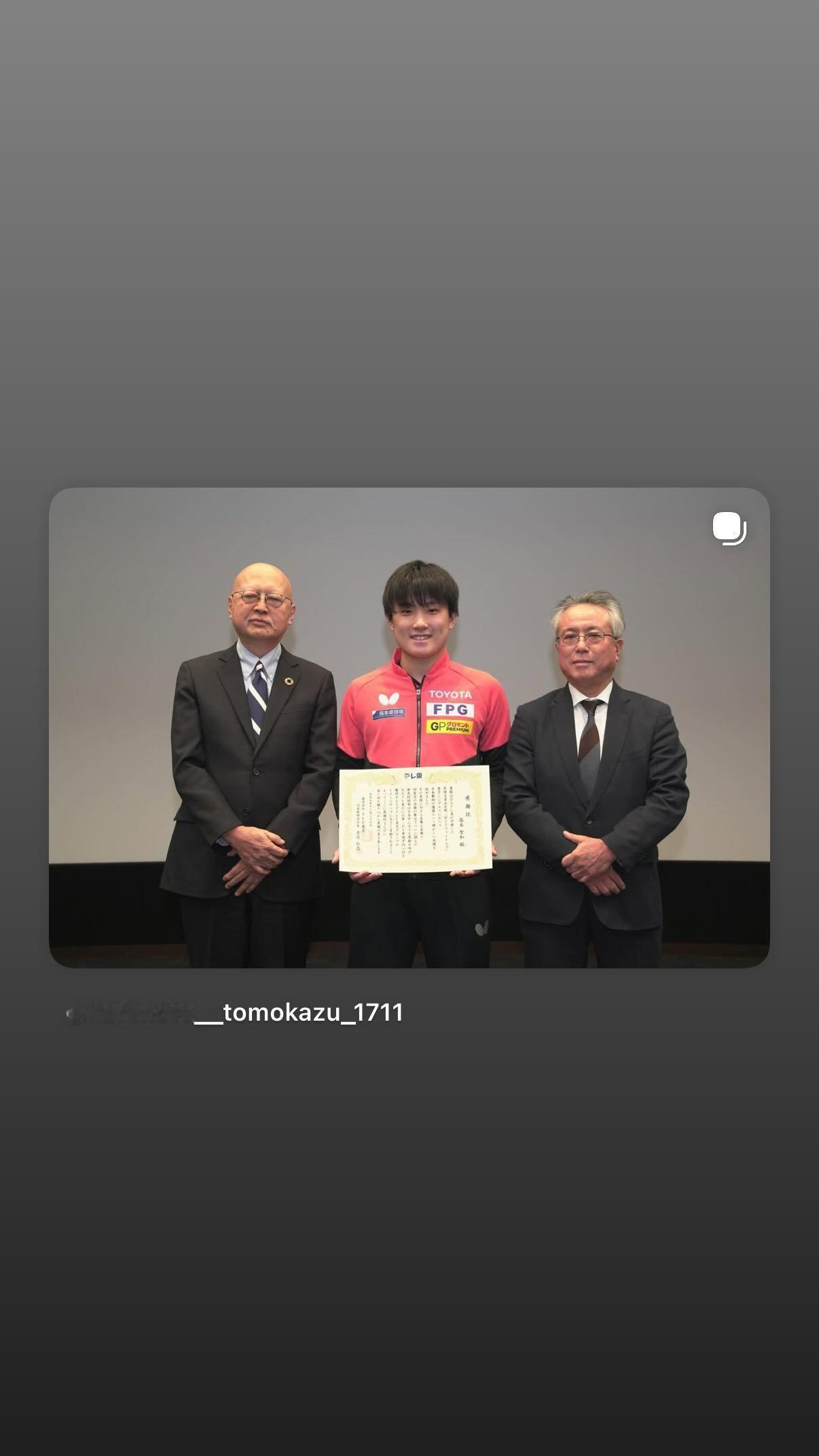 张本智和张本智和 20251227X、Instagram更新东京电视台为我举行了