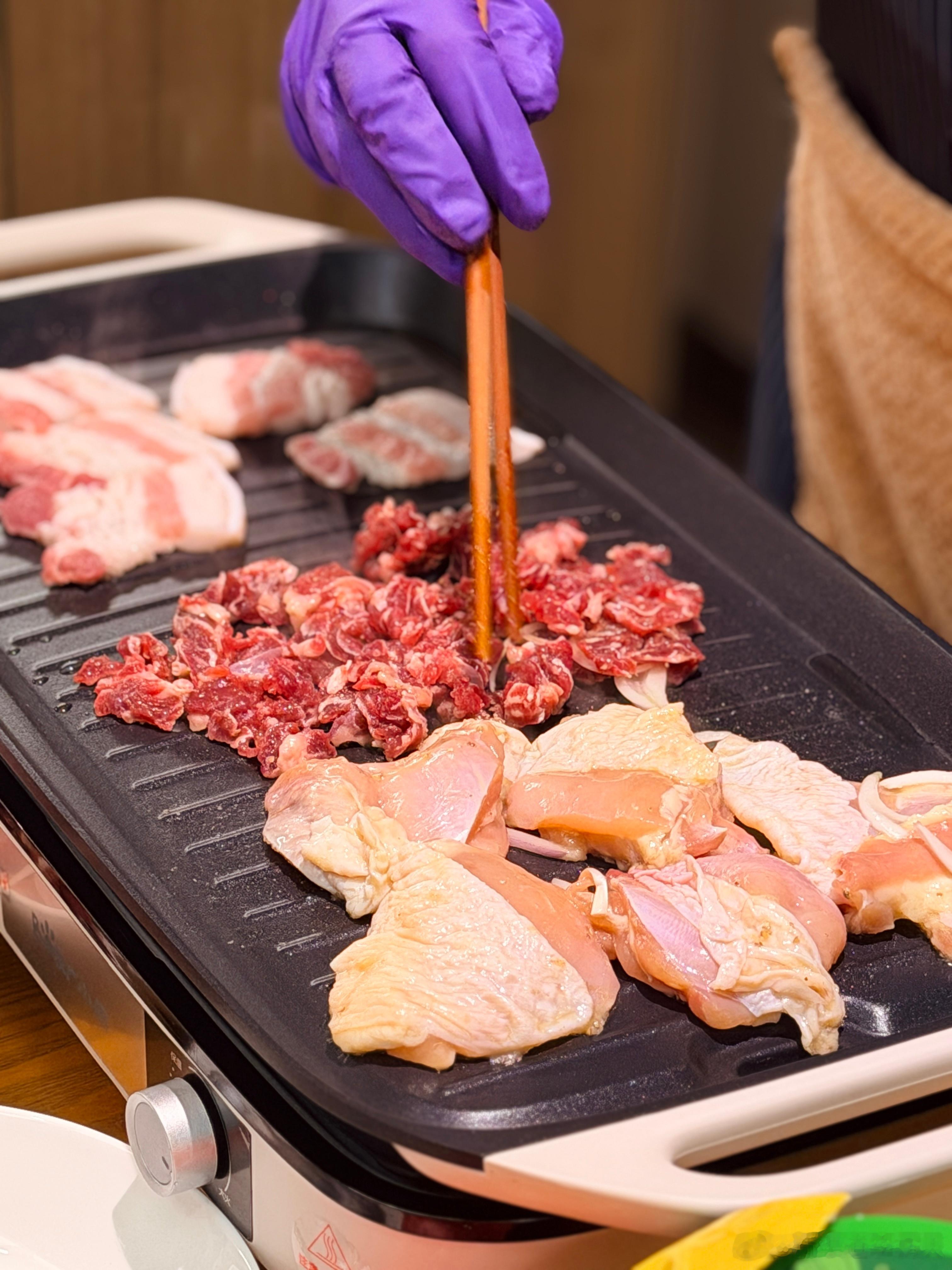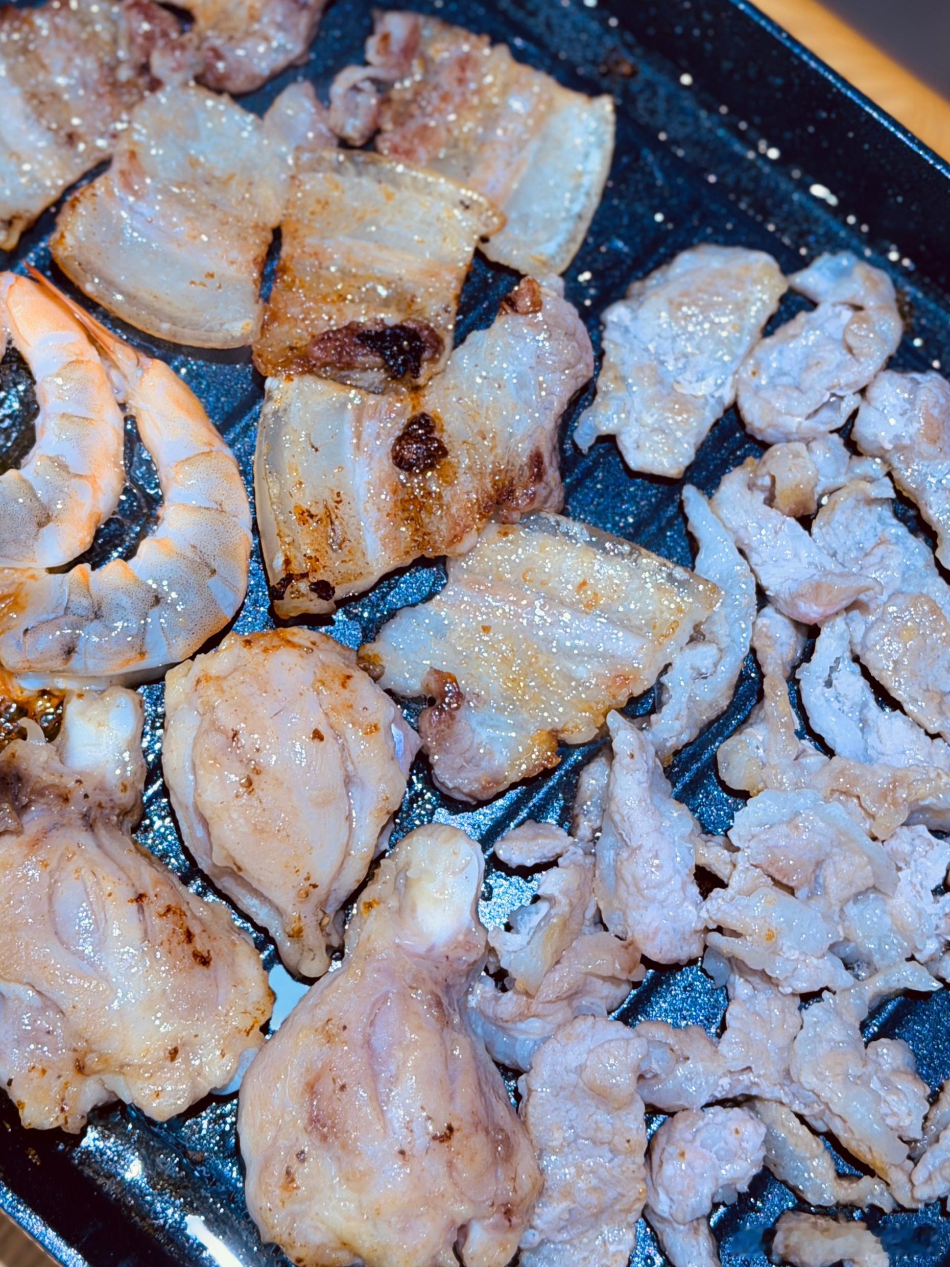 今晚去富婆闺蜜家体验家庭烤肉肉很新鲜也很丰富,嫩牛肉、鸡腿肉、猪五花、猪颈肉…配上烧烤辣椒面,真的很好吃不过开红酒把塞子戳坏了,只能拿筛子筛红酒喝(图5),也算是一种新体验你们周末吃了啥好吃的吗?霸天恰饭联播