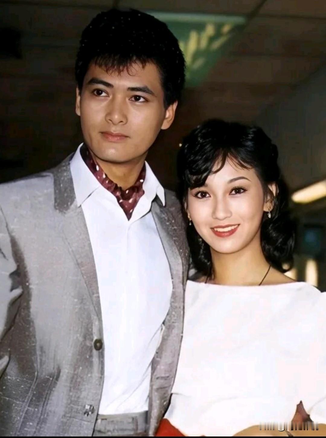 仔细看,那时的周润发疏眉朗目,气宇轩昂,身姿挺拔,西装革履的真是一表人才!而依偎在右侧的美女是谁?看她细眉飞扬、朱唇榴齿,温婉如莲,感觉比林青霞还要漂亮!能与风流倜傥的周润发合影真是不简单!她也是演员吗?有谁认识?