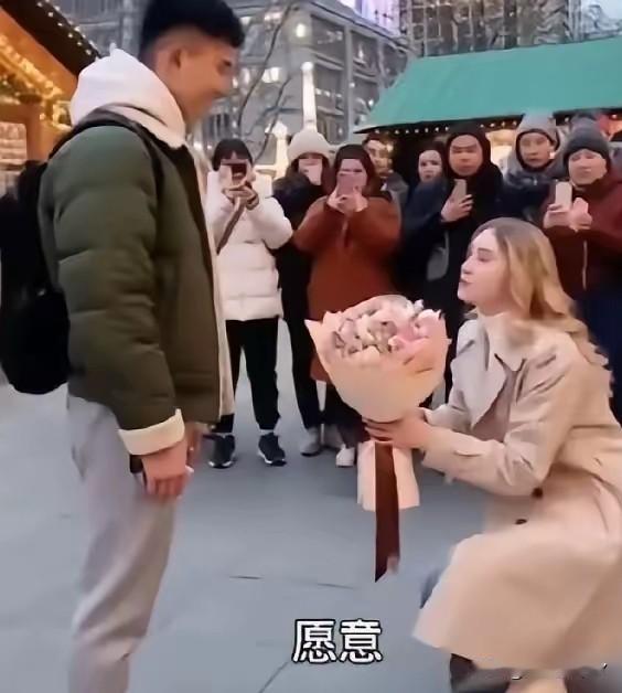 东北街头这幕太好嗑!俄罗斯姑娘反向求婚中国小伙,真相暖哭了 绥芬河街头的一场求婚,甜到了无数人的心坎里。 主角是俄罗斯姑娘卡佳,她主动向中国小伙求婚,开口就是一句实在话:“我不要彩礼不要五金,会干家务,咱们一起打拼!” 这个姑娘不简单,来绥芬河三年,从跟着父母做边境贸易,到成为跨境电商公司的翻译,一口东北腔的普通话地道极了。 在绥芬河,这事儿真不算稀奇。 中俄双语牌匾随处可见,大妈买菜能用俄语砍价,红菜汤和酸菜在超市里比邻而居,这座“火车拉来的百年口岸”,处处都是两国文化交融的影子。 卡佳的求婚,其实是两国婚恋需求的完美契合。 俄罗斯超千万的适婚女性缺口,让优质男性成了稀缺品;而中国不少男生,正被天价彩礼压得喘不过气。 加上2025年中俄互免签证政策的助力,近四年中俄通婚登记数突破3万对,边境城市占比超六成,绥芬河更是成了跨国婚恋的“热门打卡地”。 卡佳的闺蜜们,大多都找了中国男友。 她们不爱房车,独爱中国男生的顾家体贴——愿意分担家务的温柔,远比大男子主义的强硬更有安全感。 但甜蜜背后,也藏着文化磨合的功课。 卡佳早就入乡随俗,猪肉炖粉条做得地道,陪长辈喝白酒毫不怯场,春节贴春联守岁的规矩门儿清。 她见过朋友因为一句“红烧肉不好吃”闹误会,也见过因为育儿理念分歧起争执,可长久的婚姻,终究靠的是互相包容。 就像绥芬河的蜕变,从土路货场到智能口岸,从现金交易到“申报即放行”,包容与磨合才是发展的底色。 2025年绥芬河口岸货运量破千万吨,跨境贸易的红火,让这里的跨国爱情有了稳稳的物质支撑。 这场求婚最打动人的,从不是“零彩礼”的标签,而是卡佳对婚姻的清醒认知:爱情不是索取,是并肩前行的笃定。 当爱情褪去物质的枷锁,跨越国界的心动,才更显珍贵。