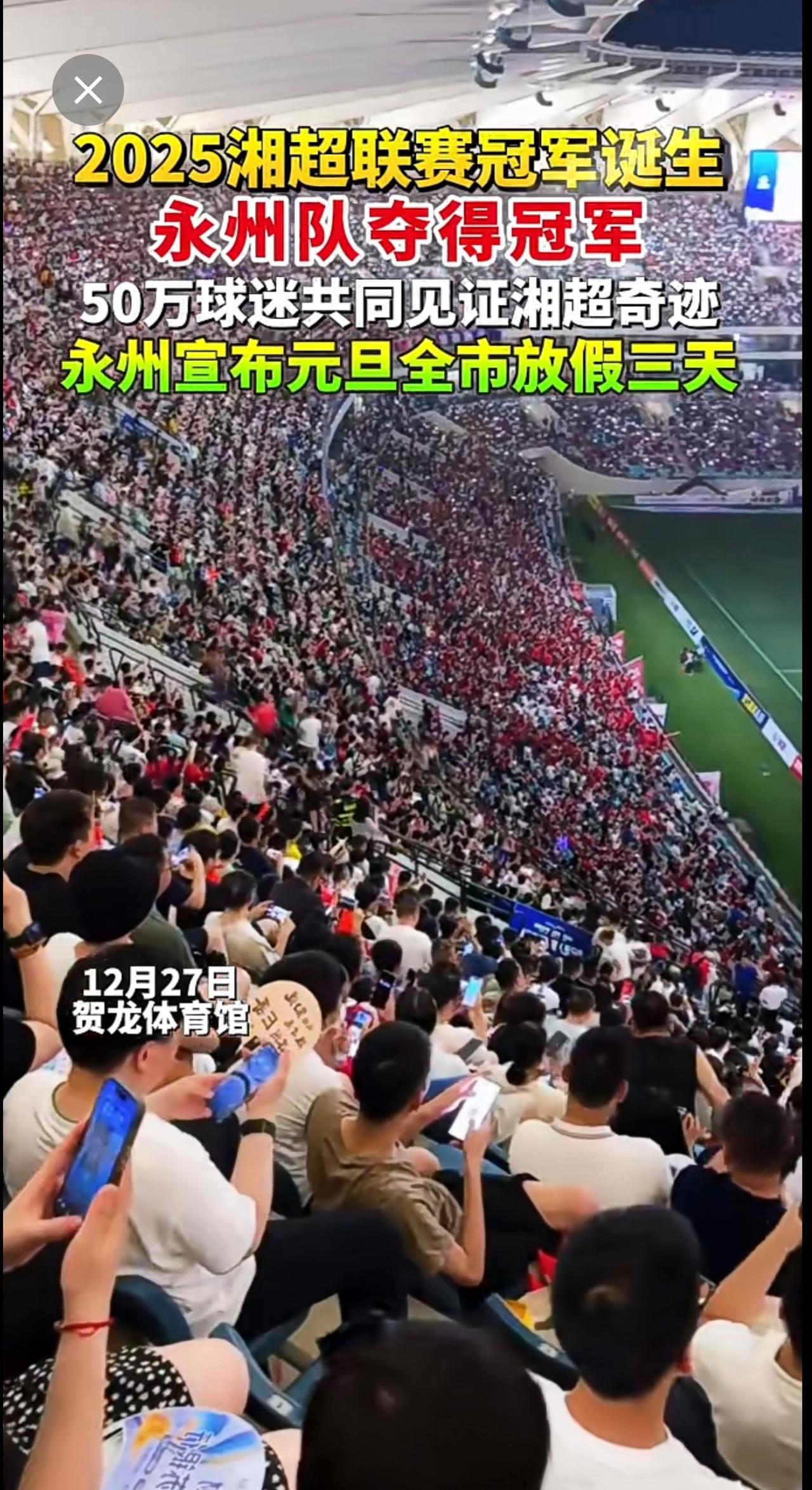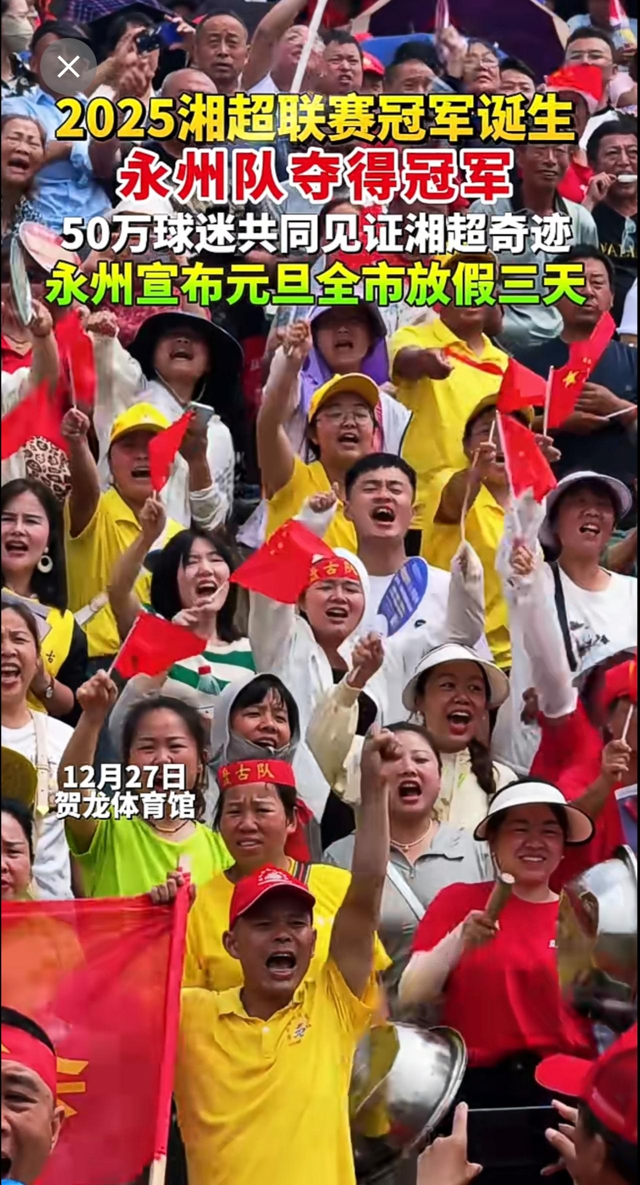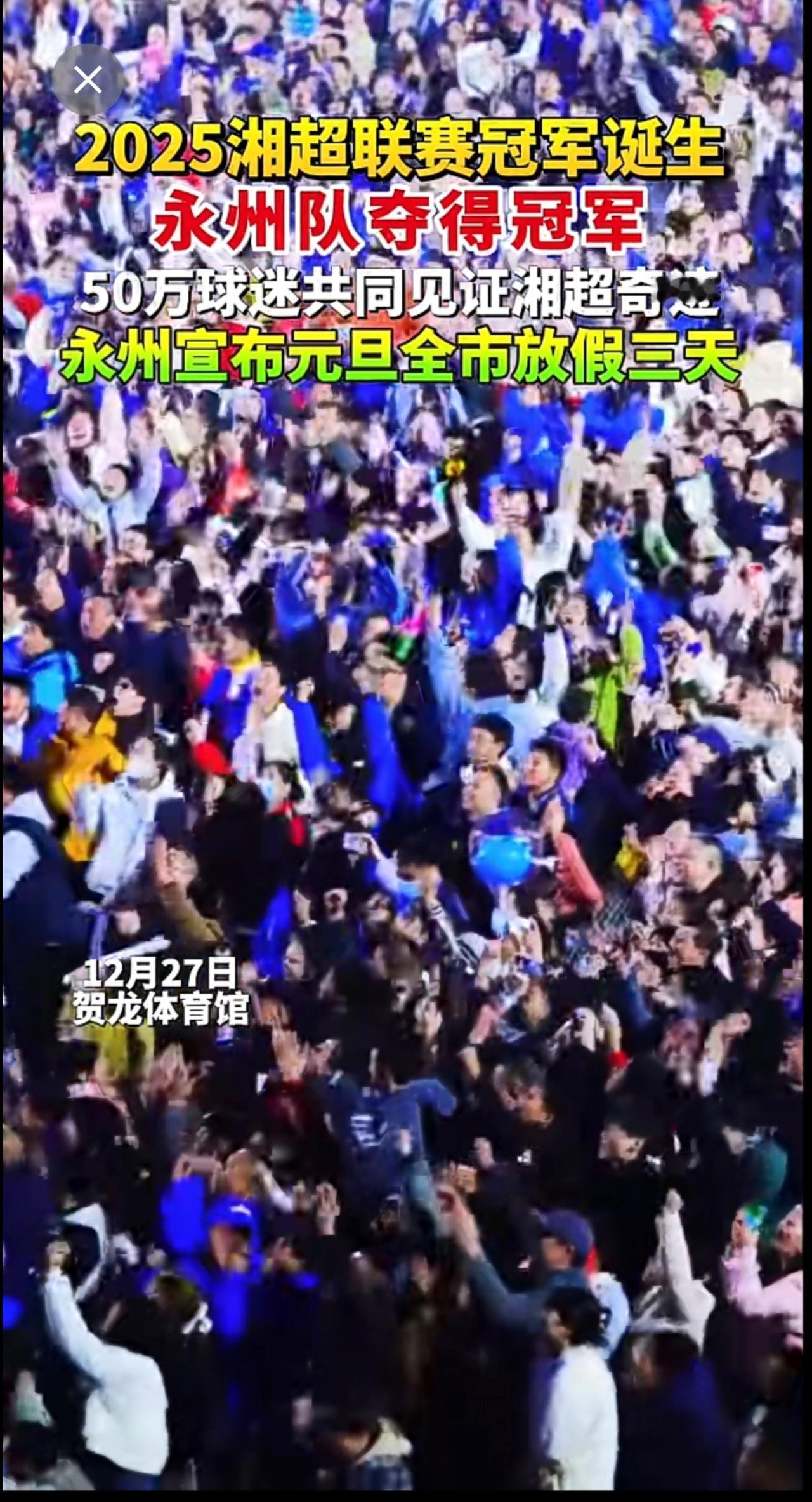 2025年12月27日,湘超足球联赛冠军诞生!永州队夺得首届冠军!国际足联主席第一时间向永州送来祝贺!湘超总冠军 2025湘超联赛 湘超