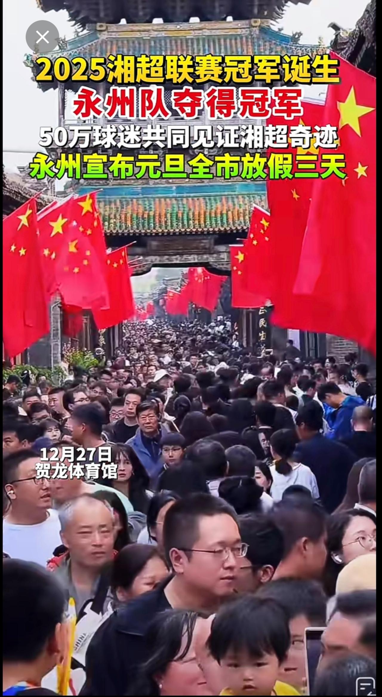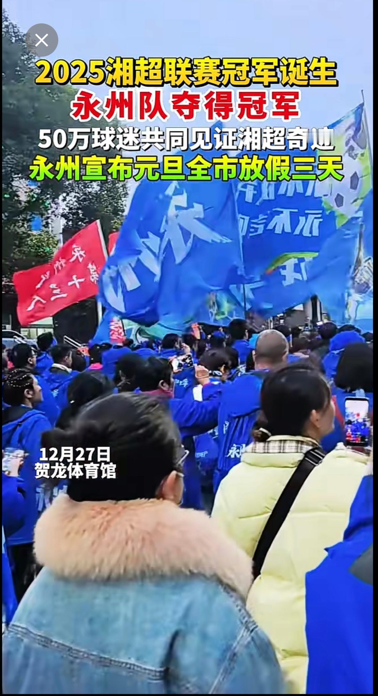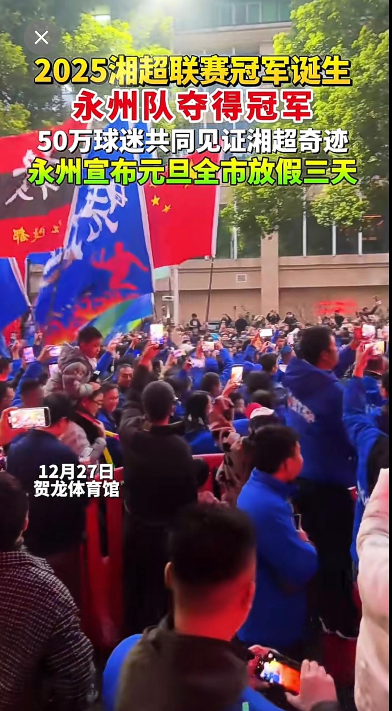 2025年12月27日,湘超足球联赛冠军诞生!永州队夺得首届冠军!国际足联主席第一时间向永州送来祝贺!湘超总冠军 2025湘超联赛 湘超