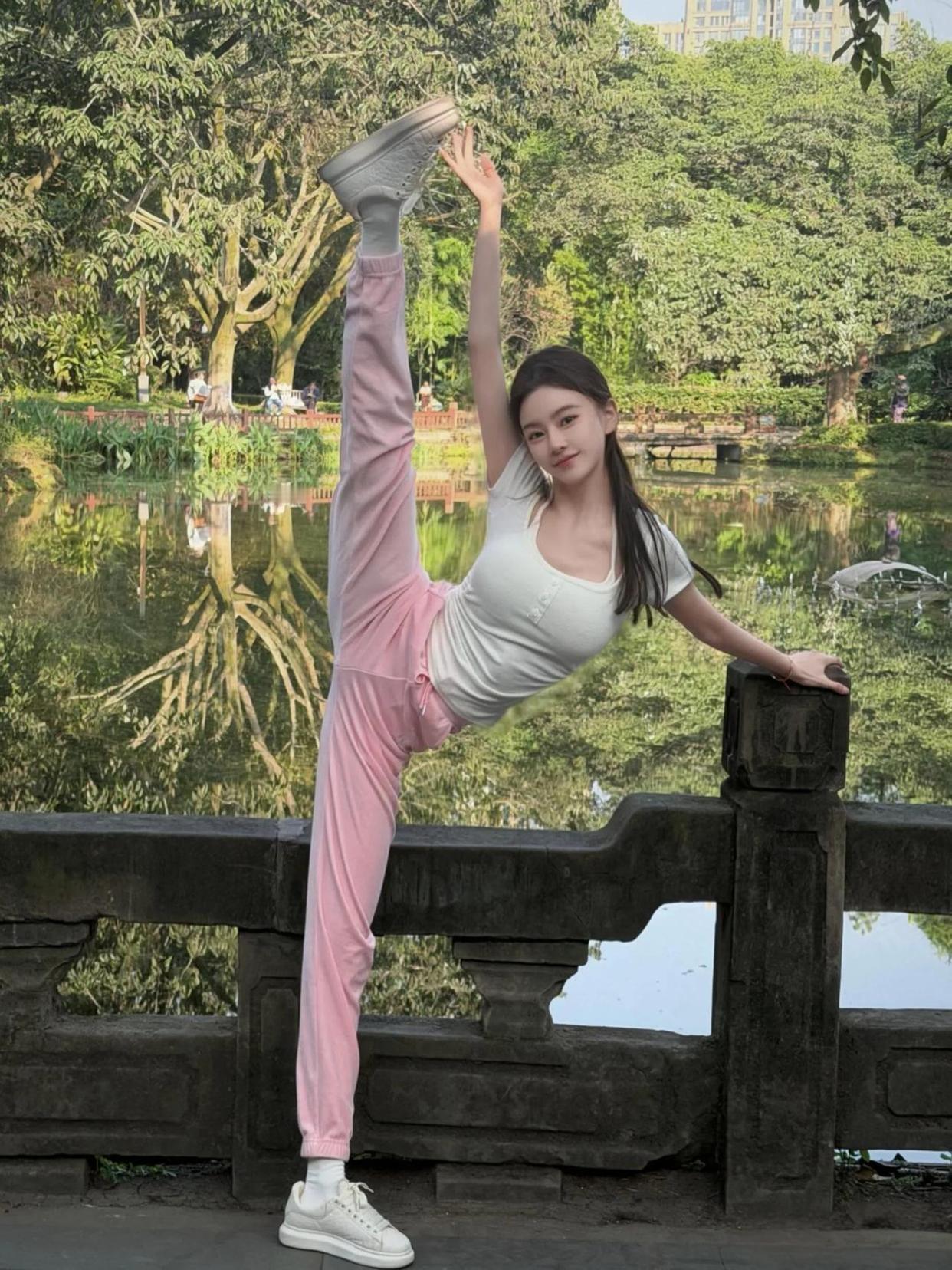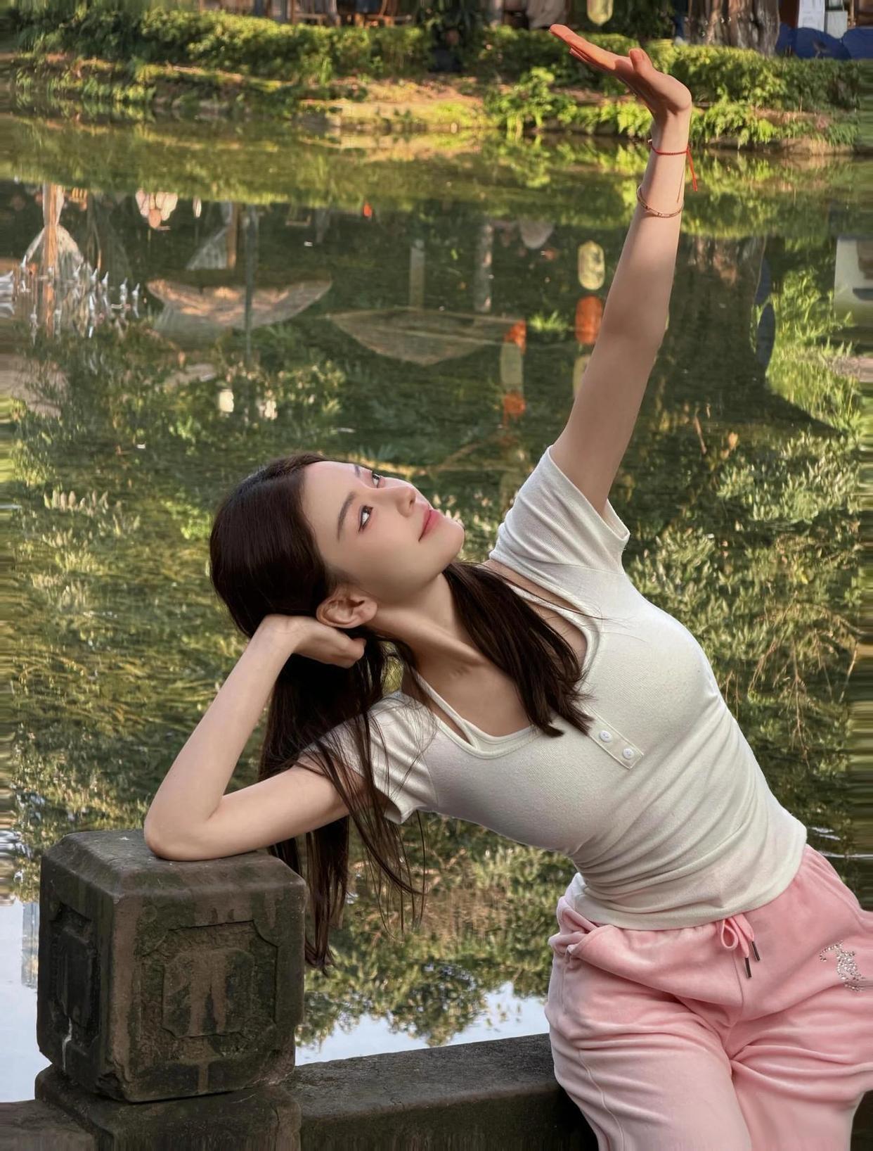她把晨光揉成绒, 缝进湖水的皱褶里—— 你看那杏色的温柔, 在石桥边化成了云。