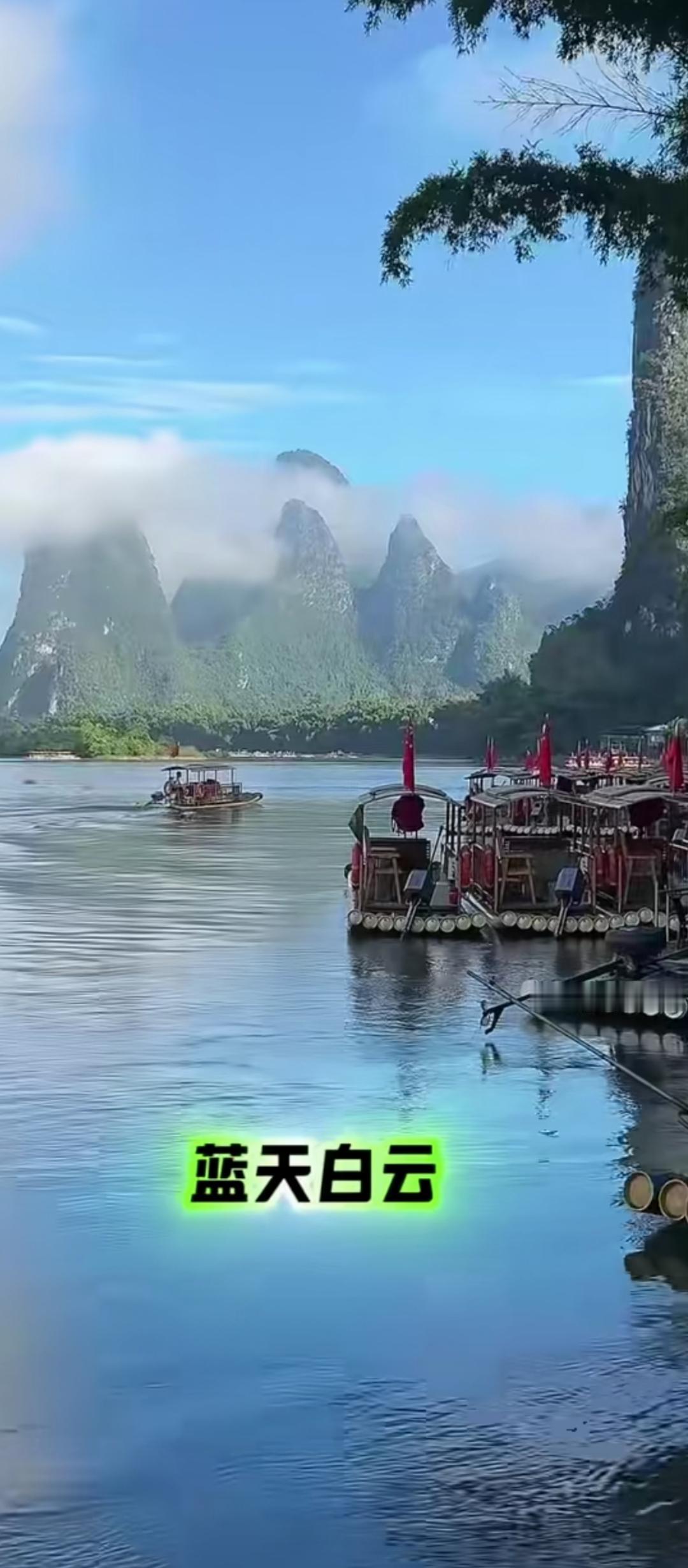 家乡美:乘一叶扁舟,游碧波万顷,赏桂林山水甲天下。