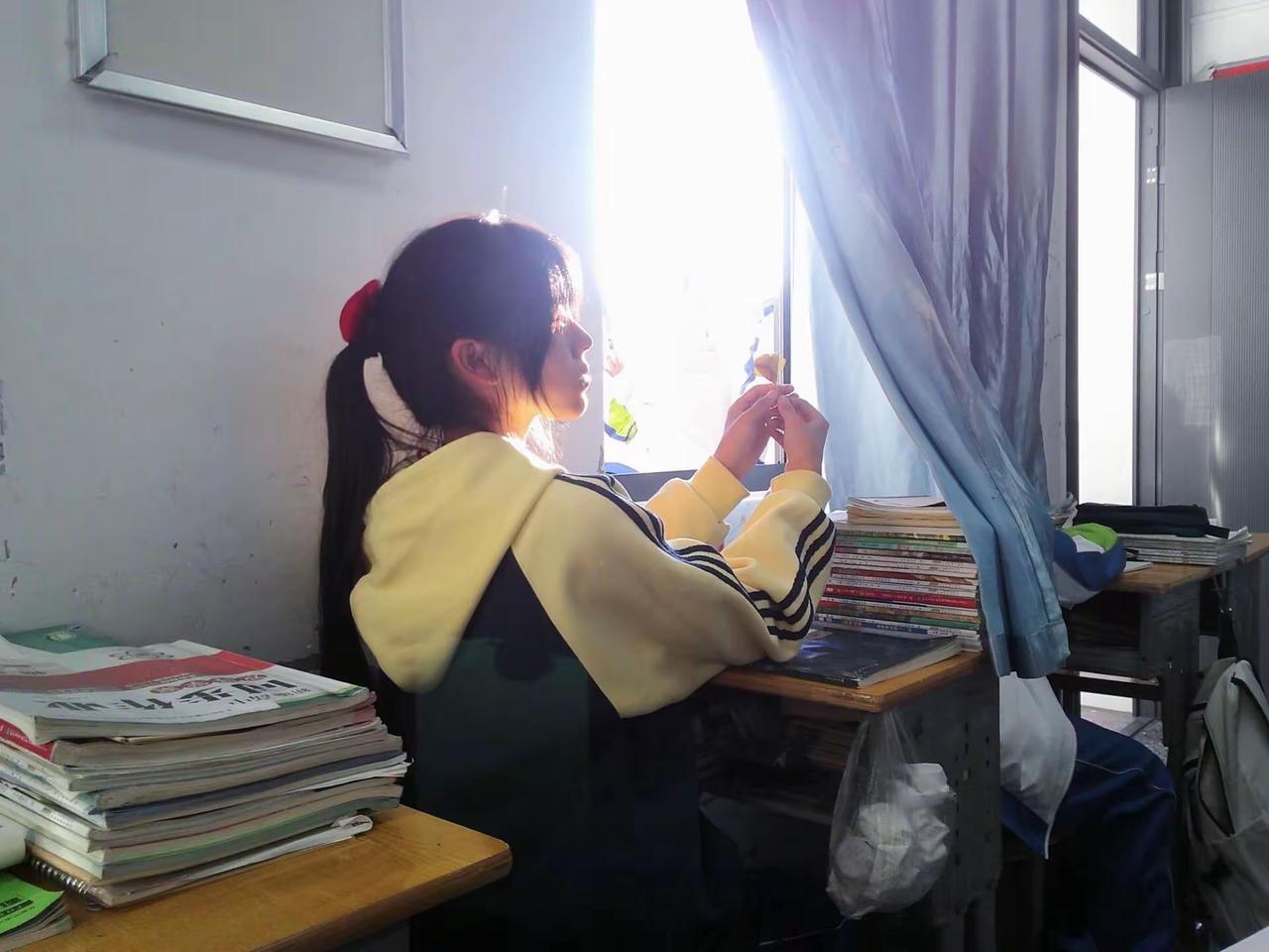 阳光洒进教室,少女静坐窗边,沉浸在书香与梦想中。窗边静谧写真 窗边暖阳写真