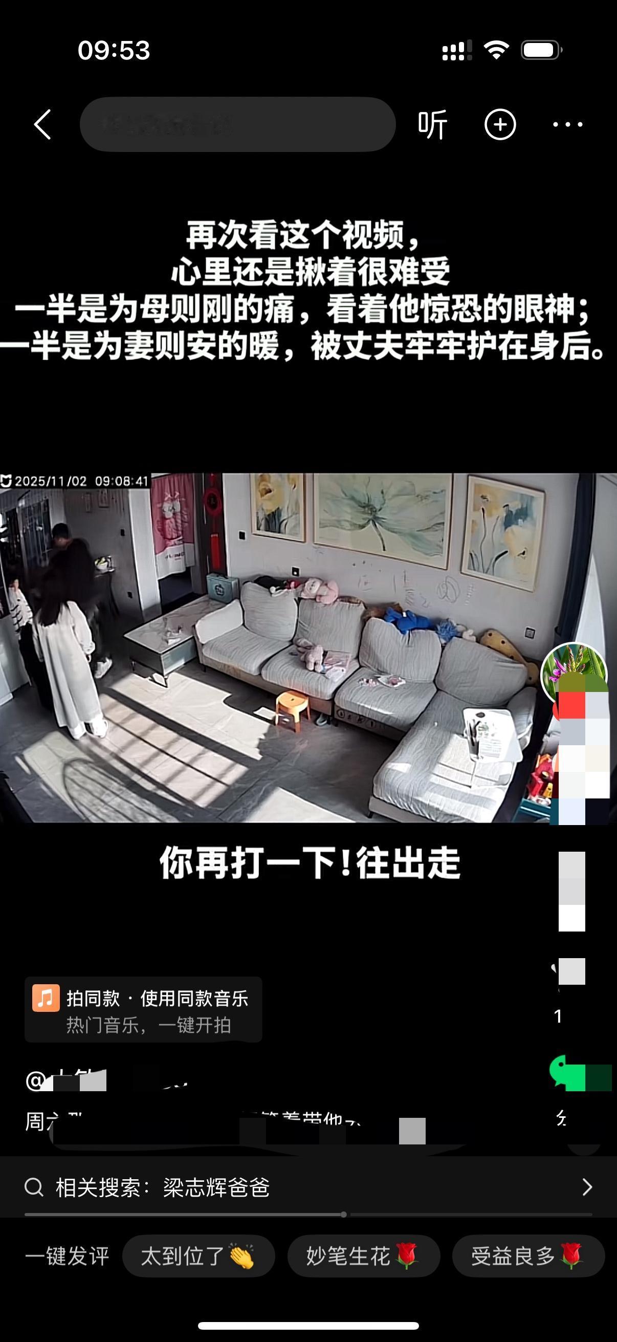 儿子拳打脚踢母亲,母亲招架不住,拿他没办法,说你再跟我动手。父亲看到了,在后面对着儿子就是一脚,你打谁呢?儿子一脸懵逼,甚是惊恐。父亲再次呵斥他,你再打一下,往外走。说完,父亲对着儿子又是一脚。妻子眼含热泪,被丈夫牢牢护在身后。