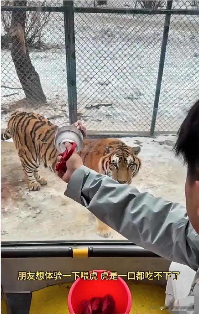 东北虎被游客投喂到“吃不下”,爱也要有边界 近日,哈尔滨东北虎林园的东北虎成了“幸福的烦恼”主角。大量游客热情投喂,观光车一圈圈转,肉块不断扔出。有游客递肉到虎嘴边,老虎却爱答不理。园区工作人员称,老虎正常一顿吃50到60斤,但游客多时投喂过量,老虎吃饱就不再吃。过度投喂或影响老虎健康,爱它,就请遵守规则,别让善意变伤害。