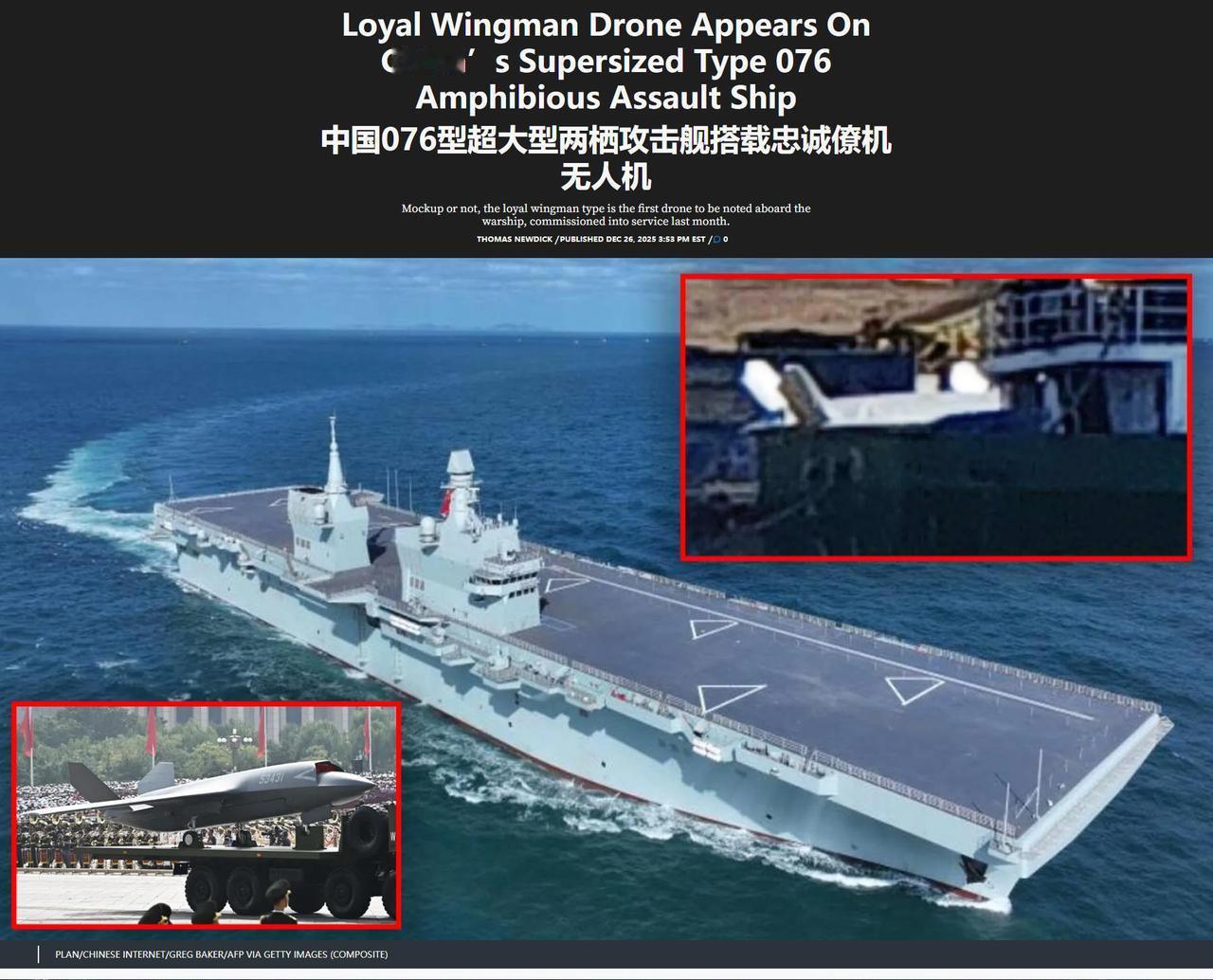 076“四川舰”明年服役没问题了。 近期已经进行2次海试。 最近甲板上出现“无人僚机”全尺寸模型 说明正在进行甲板调度测试 后续可能就要进行电磁弹射无人机测试
