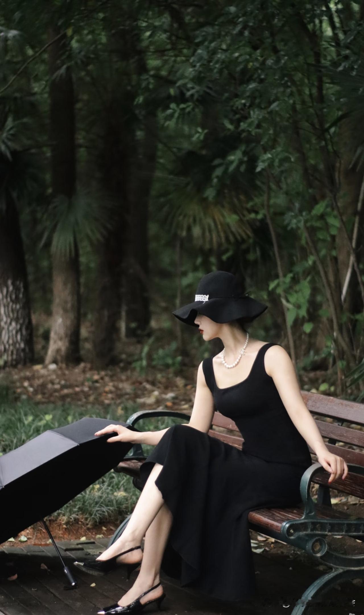 黑白配色 赫本风时尚赫本 赫本照片 赫本照 赫本黑裙子 赫本黑经典 赫本拼接小黑裙 赫本风黑裙子
