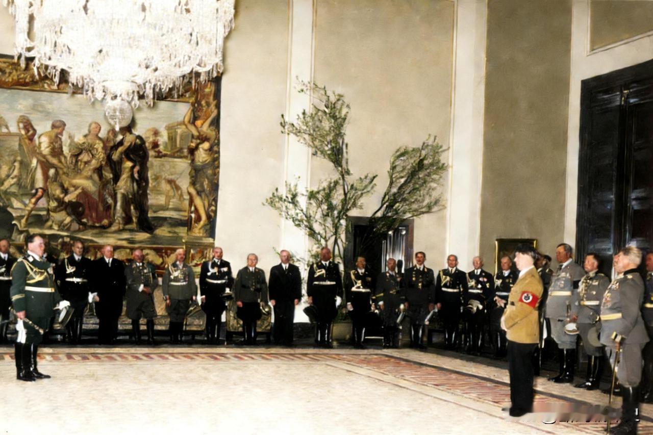 1939年4月20日是希特勒50岁生日,纳粹高层在柏林新帝国总理府向希特勒表示祝贺,画面最左侧面向希特勒的是戈林。这一天,柏林举行了盛大的庆祝仪式,包括阅兵式,戈培尔甚至宣布这一天为国家纪念日。 希特勒 德军老照片 二战希特勒 德国第三帝国 二战德国柏林 历史 历史老照片 二战德国 军事