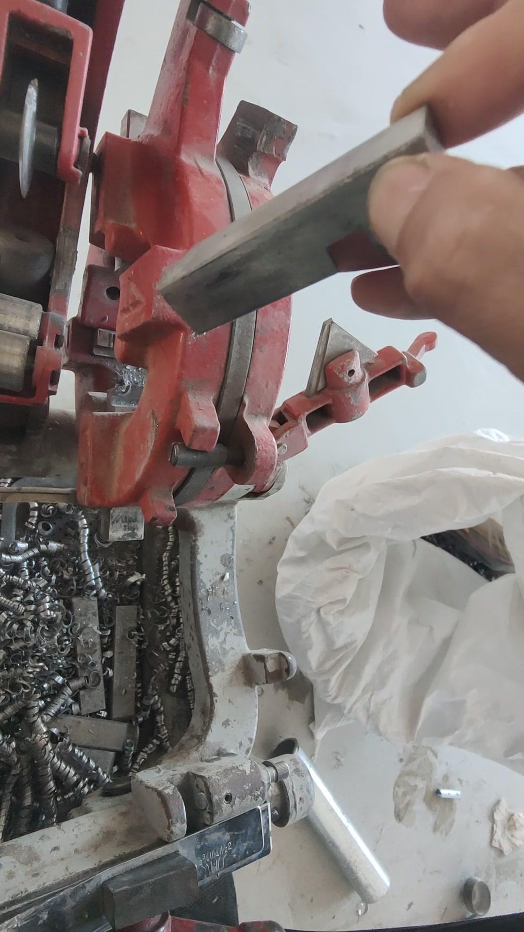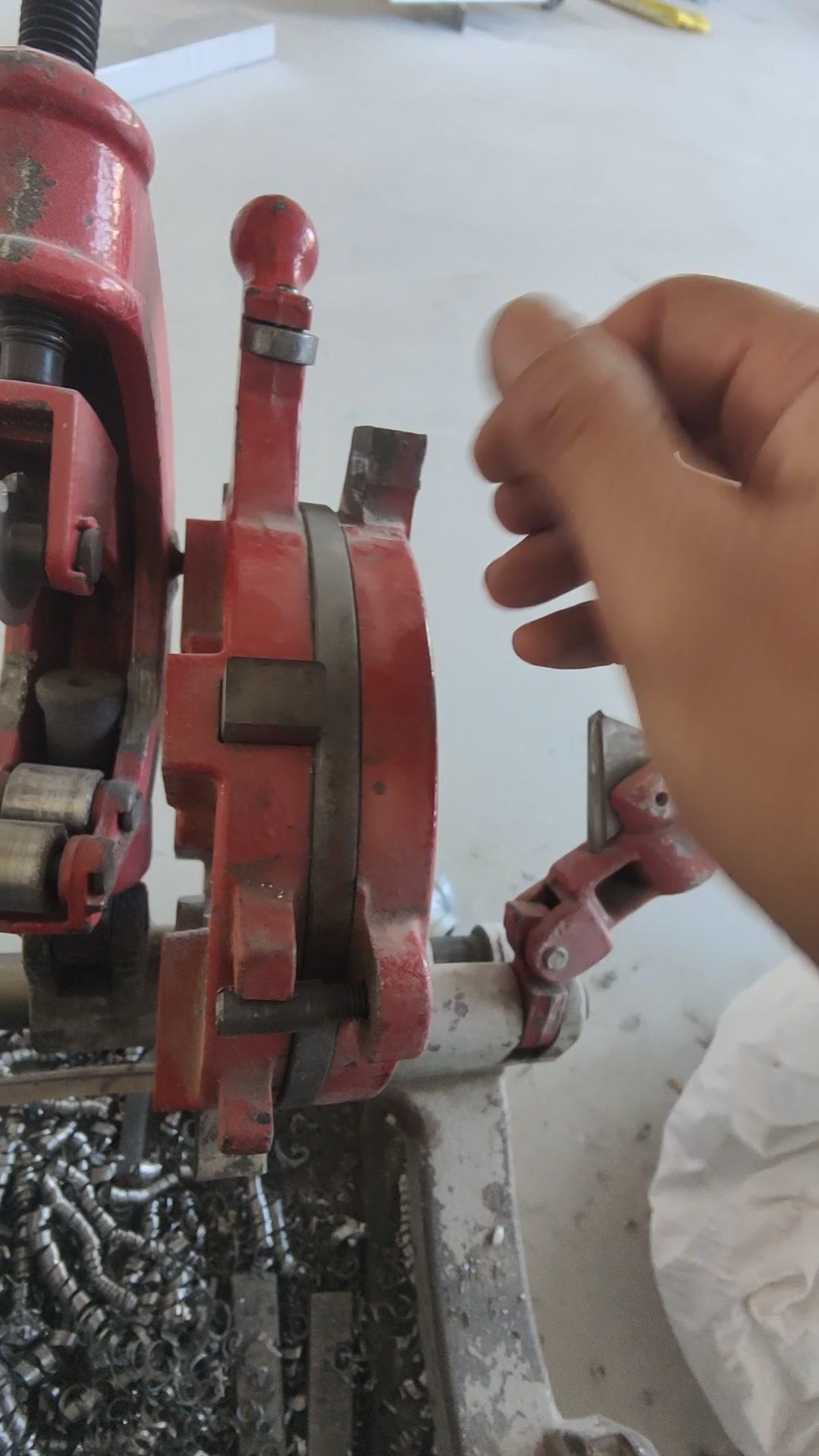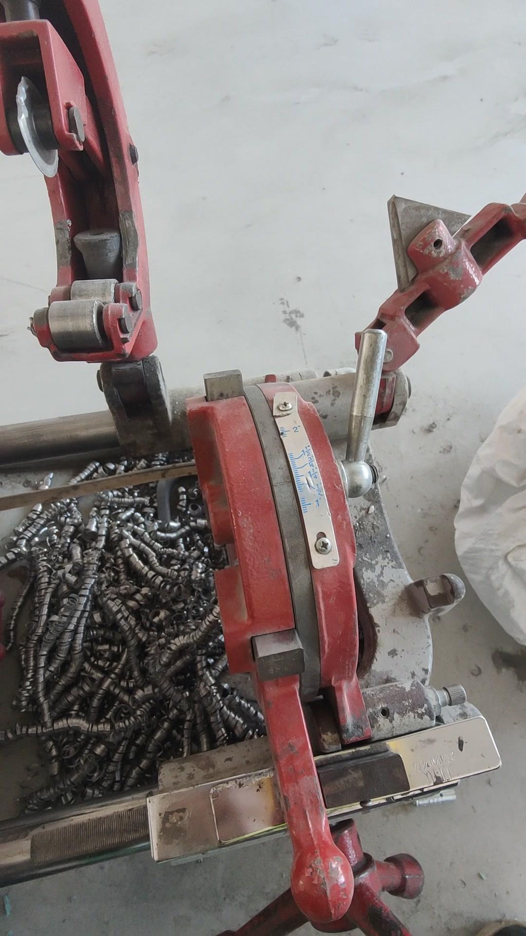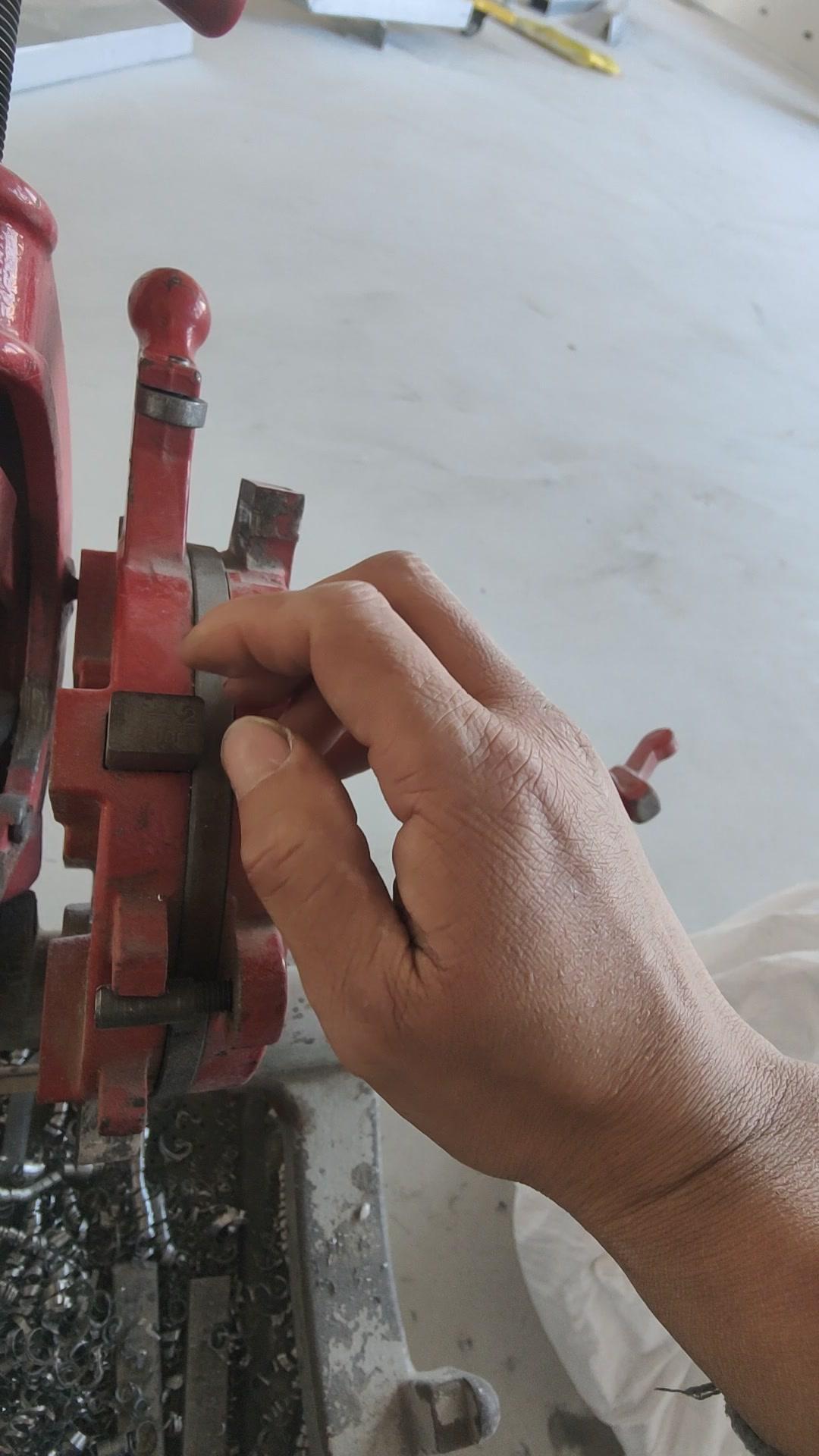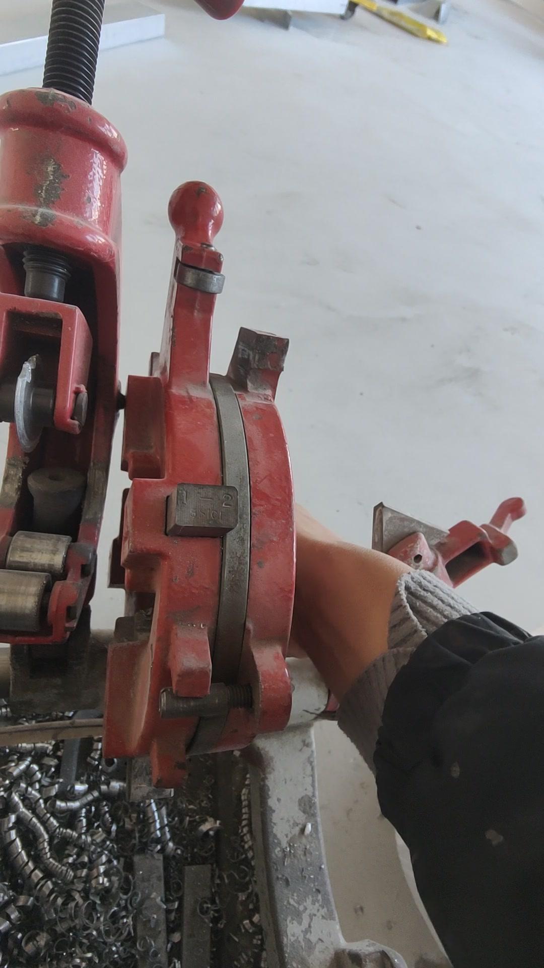 💡水电工教你一招!套丝机换板牙原来这么简单! 先把调四口的支具搞松,这样就能方便地进行换板牙操作。 把支具抬起来,板牙就能很好地拆掉。上面都有数据标识,1234清晰明了,扣上去很方便,放的时候直接把卡扣住就行。 一般套丝时,50以上或25以下的尺寸都要来回换板牙,而且板牙用久了容易破损,破损后就没法套丝了,所以学会换板牙很重要。