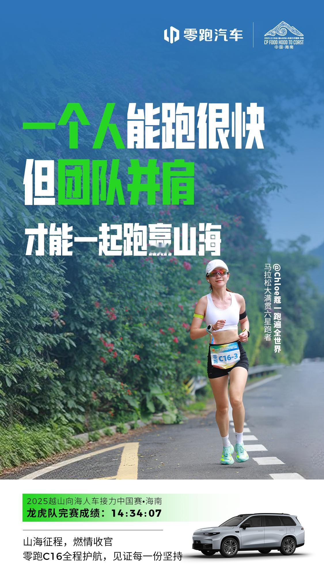 一个人能跑很快,但团队并肩,才能一起跑赢山海这份名为“零跑精神”的默契,在142.7km的征途上化为行动信任、接力、为彼此而战用接力写下的答案就是——无团队,不山海越山向海零跑C16