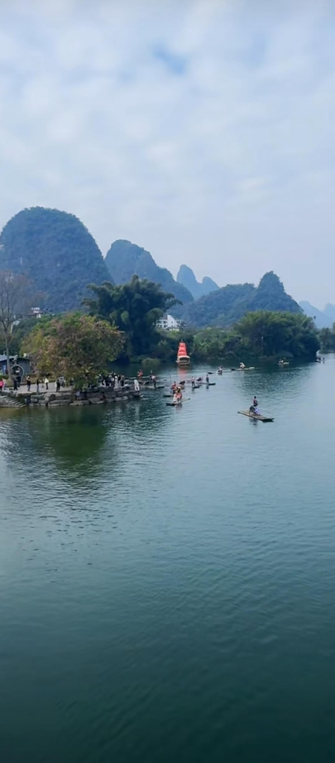 家乡美:乘一叶扁舟,游碧波万顷,赏桂林山水甲天下。