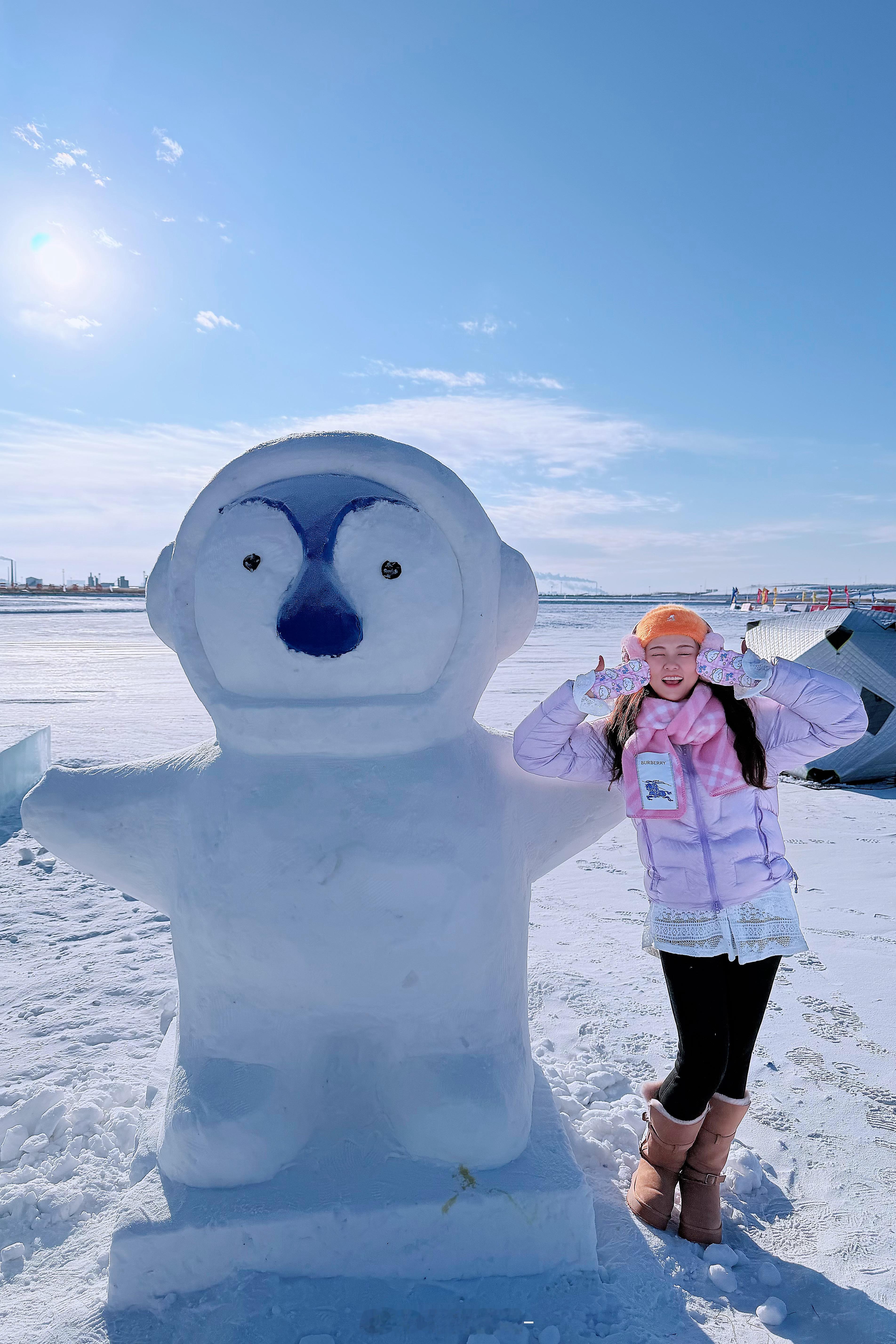 腾势这个小可爱,在呼伦贝尔做了个企鹅冰雕!太可爱啦!!!!