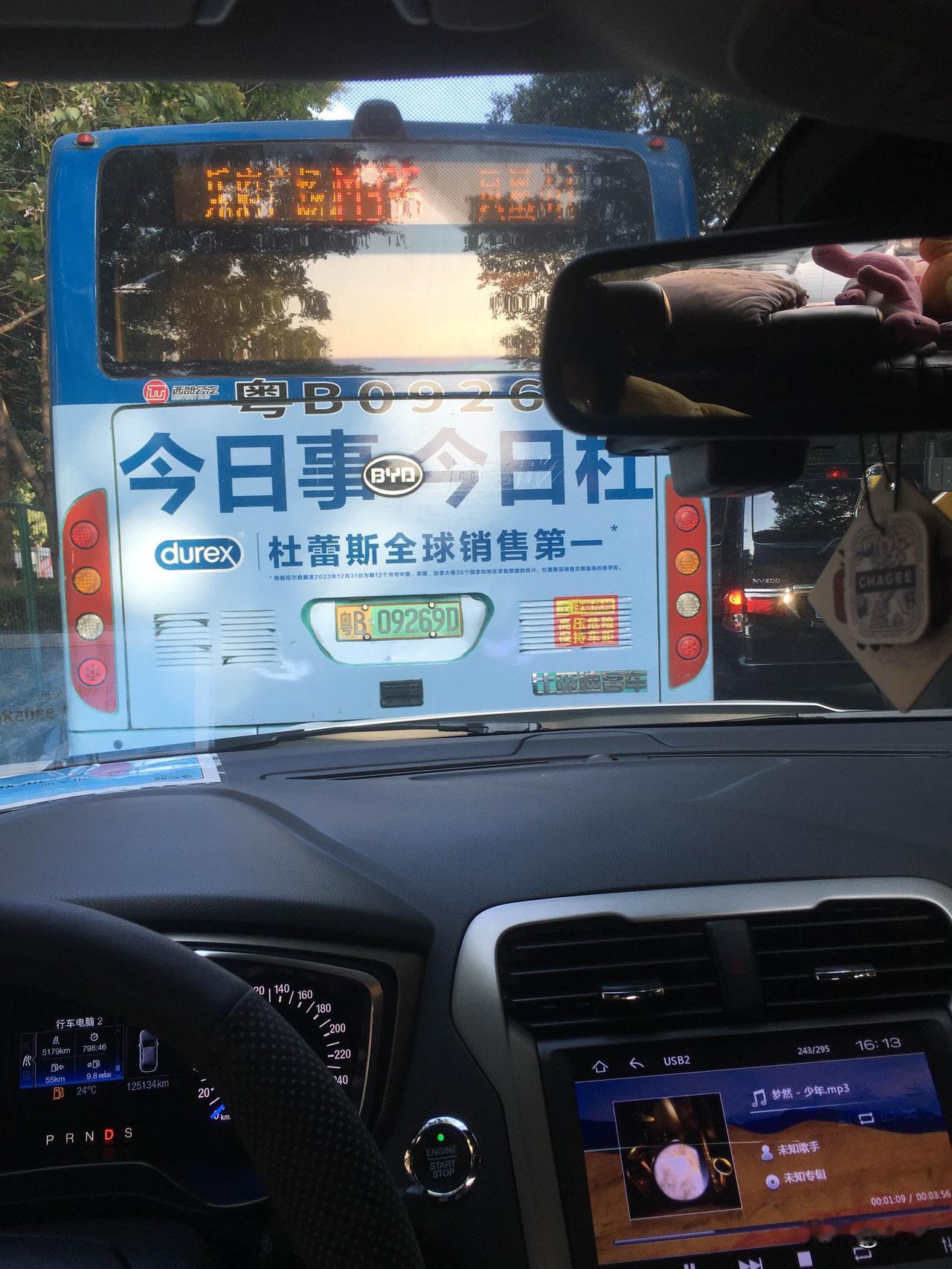这广告绝了!好直接啊,小学生看了不太好吧,谁知道这啥意思吗? 深圳公交集团的的广告收入应该不少吧。 每台公交车身都贴满了各种广告, 各种吃的喝的住的穿的,五花八门。 这种电动的公交车又大又长,经常横冲直撞的。