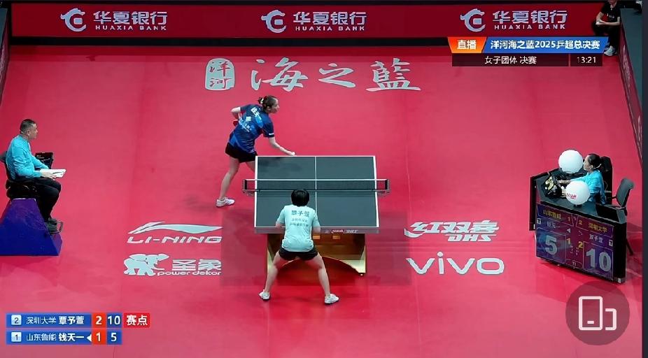 覃予萱独揽2分!深大3-1鲁能斩获乒超女团冠军 乒超总决赛女团决赛收官,深圳大学以总比分3-1击败山东鲁能,成功拿下女团冠军!小将覃予萱成了这场比赛的绝对主角! 关键的第四场单打,覃予萱对阵钱天一,以3-1的比分稳稳拿下胜利,这也是她本场斩获的第二分!此前她已横扫徐奕为球队建功,两场单打全胜的战绩,直接把胜利的天平拉向深大。 面对徐奕时的凌厉进攻,对阵钱天时的沉稳周旋,覃予萱全程发挥在线,每一拍都打得有章法、有底气,完美兑现了大家的期待。深大女团能登顶,小蘑菇的双杀表现功不可没,这颗乒乓新星的未来太值得期待了!🏆 乒超联赛 覃予萱