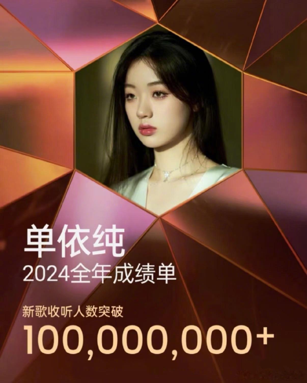单依纯连续2年新歌收听破亿 恭喜单依纯再创佳绩!连续两年新歌收听破亿,成绩亮眼。两年间风格多变,舞台表现愈发成熟,新专辑试听让人上头,全专上线必须冲。