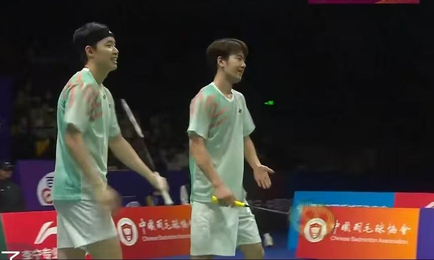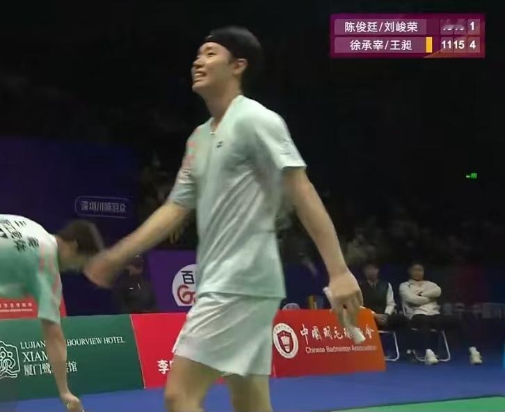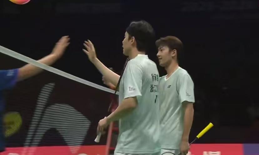 随着王昶最后的得分,徐承宰/王昶为浙江竞体拿下了男双这一分。而此前的女双和男单,浙江已经连胜两场,男双的获胜也意味着他们已经赢得了今天与深圳羽众的这场比赛。这样,他们在芜湖站的四场比赛中,全部取得了胜利。 徐承宰/王昶今天的对手是陈俊廷/刘峻荣。这对小将的策略也很明确,有一定的速度,还有一些主动变化。对对手不熟悉的徐承宰/王昶首局失利。 第二局开始后,徐承宰/王昶配合逐渐默契,王昶有机会就到前场抓球,打得主动,徐承宰/王昶逐渐占据上风,结果以15-10和15-8连胜两局逆转获胜。 比赛结束后,徐承宰也向观众挥手致意,他也结束了这一站的比赛。