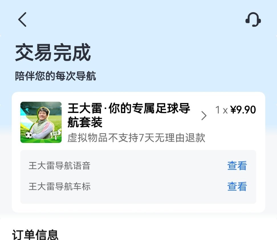高德地图王大雷版专属足球导航套装正式上线了,花9.9元即可使用。大家速度用起来