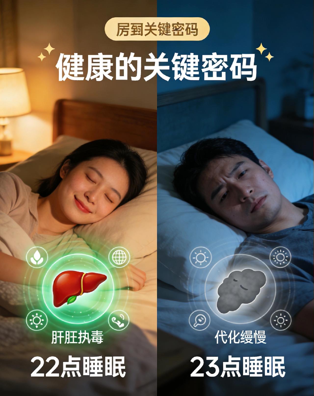22点和23点睡觉差距有多大 别觉得就差1小时!22点睡和23点睡,看似只是睡前多刷一小时手机,长期坚持下来,身体状态天差地别,有人精神饱满有人满身疲惫,这一小时藏着健康的关键密码,很多人都熬错了! 看似短短60分钟,实则精准踩中人体生物钟的关键节点。人体23点到凌晨3点是肝脏排毒、深度睡眠的黄金时段,22点入睡能顺利进入深度睡眠,肝脏高效代谢排毒,修复身体机能,23点睡早已错过最佳入睡窗口,哪怕睡够8小时,也多是浅睡眠,睡再久也睡不踏实。权威数据显示,22点前入睡的人,深度睡眠时长比23点后睡的人多30%,晨起精神状态直接拉开差距。 长期22点睡的人,身体自带良性循环。内分泌稳定,皮肤状态透亮少暗沉,晨起不犯困,白天工作学习专注力强,不易疲惫焦虑,免疫力也更在线,换季不易生病。反观长期23点后睡的人,哪怕作息规律,也容易出现失眠多梦、晨起乏力,时间久了还会出现脱发、长痘、代谢变慢,甚至情绪烦躁易怒,看似熬的是夜,耗的全是身体本钱。 很多人总说忙到22点根本没法睡,其实大多是被刷手机、追剧等琐事占用了时间。这一小时根本不是刚需,而是习惯性拖延,总觉得熬夜能偷来自由时光,殊不知偷来的快乐,全是用健康换来的。成年人的身体经不起长期消耗,看似不起眼的一小时,日积月累就是健康与亚健康的差距。 更关键的是,早睡带来的不仅是身体舒适,更是正向的生活状态。坚持22点入睡,能慢慢养成规律作息,白天效率更高,还能拥有早起的碎片时光,慢慢摆脱熬夜内耗,整个人的心态都会更平和积极。不用追求凌晨入睡的极致养生,只需把入睡时间提前一小时,就能感受到身体的明显变化。 别再忽视这一小时的差距了,熬夜一时爽,长期熬伤身又耗神。你是不是总忍不住熬到23点后?尝试过22点入睡,感受到身体的变化了吗?欢迎评论区分享你的作息心得!