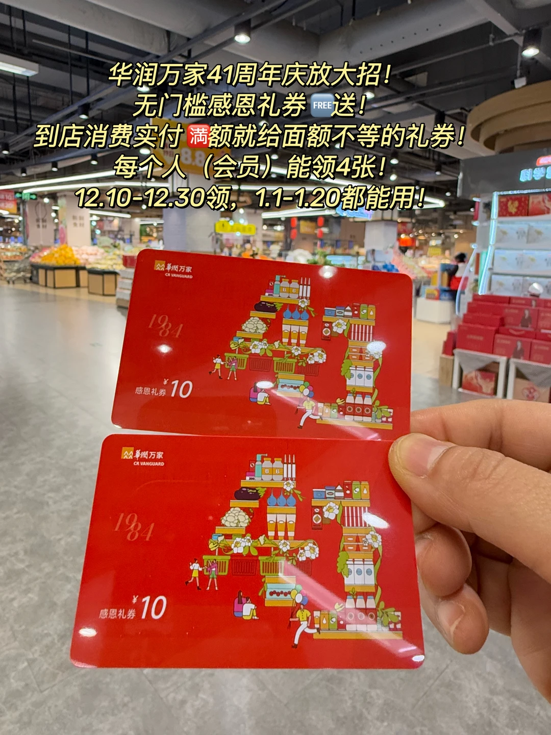 到店消费实付🈵额就给面额不等的礼券!每个人(会员)能领4张!12.10-12.30领,1.1-1.20都能用!