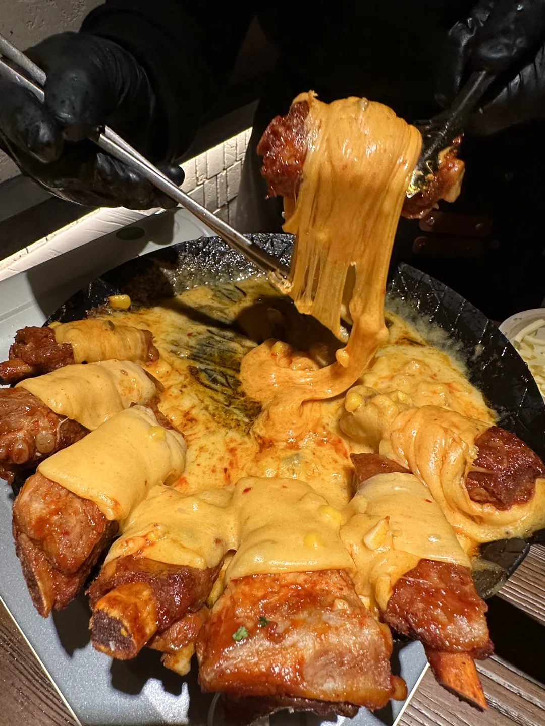 每次必点!韩式排骨裹上热乎乎的芝士,拉丝很长,奶呼呼的,芝士奶香和肉肉!
