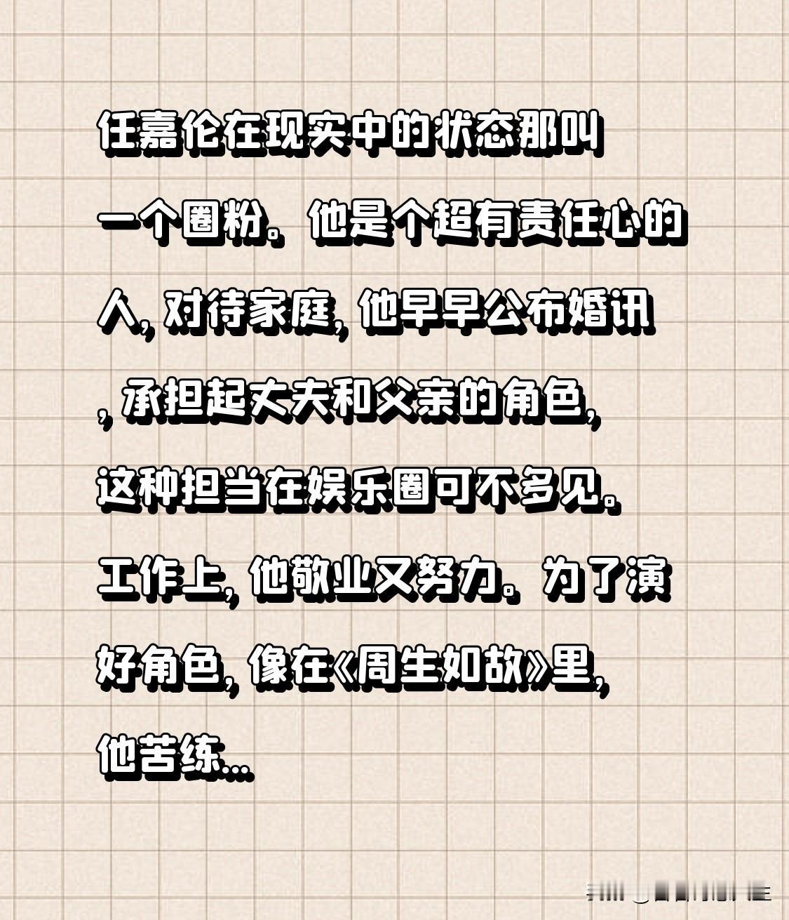 任嘉伦在现实中的状态那叫一个圈粉。他是个超有责任心的人,对待家庭,他早早公布婚讯