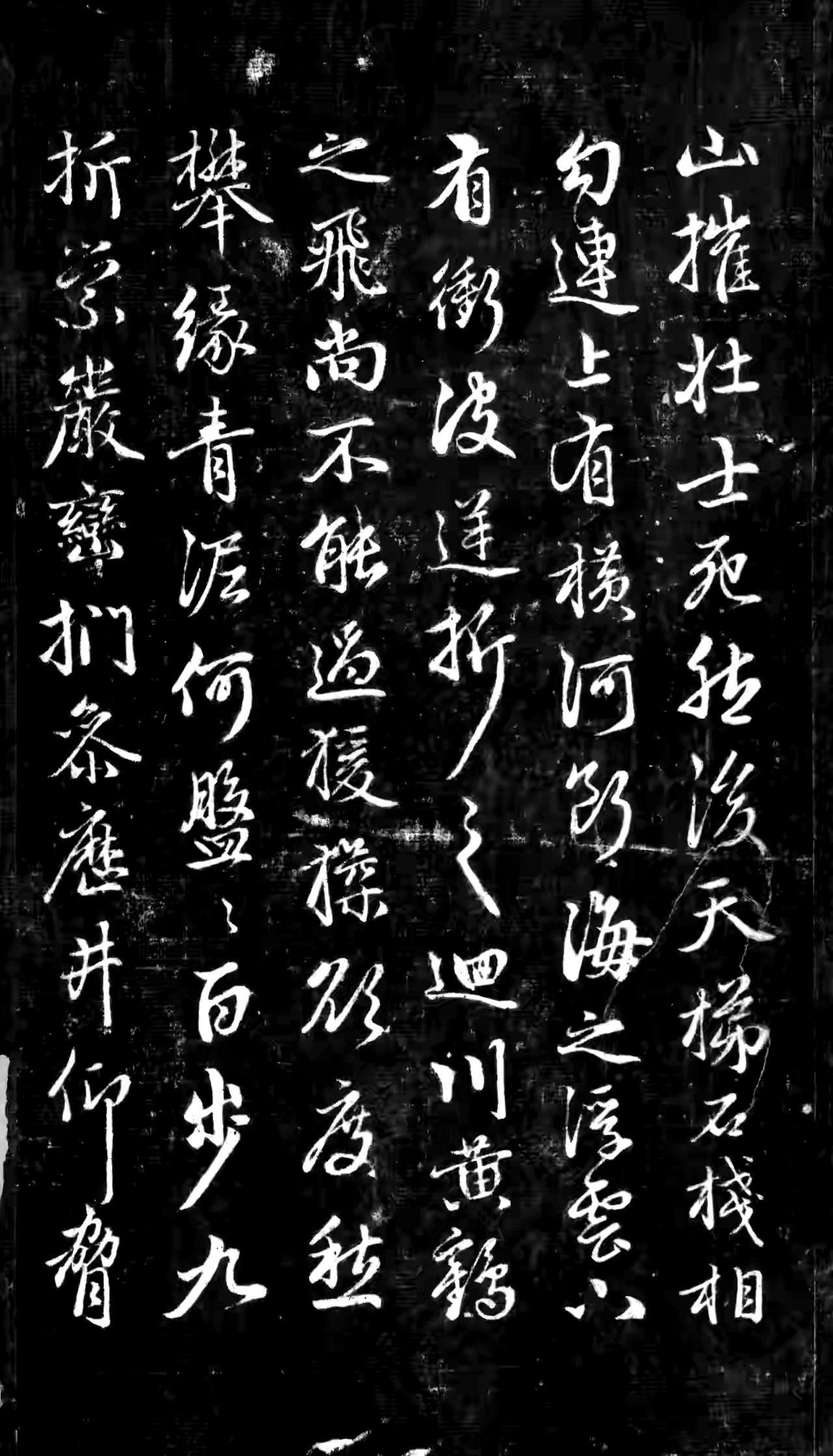 元代赵孟頫行书《蜀道难》 一般被认为是后人集字而成的作品。此作行笔丝滑流畅,起笔沉稳含蓄,笔画间呼应精妙,使整幅作品气韵贯通。笔画形态丰富,或轻盈飘逸,或刚劲有力。字的结构严谨而不失灵动,整体布局疏密得当,行列整齐又富有节奏感,将诗歌与书法艺术完美融合。