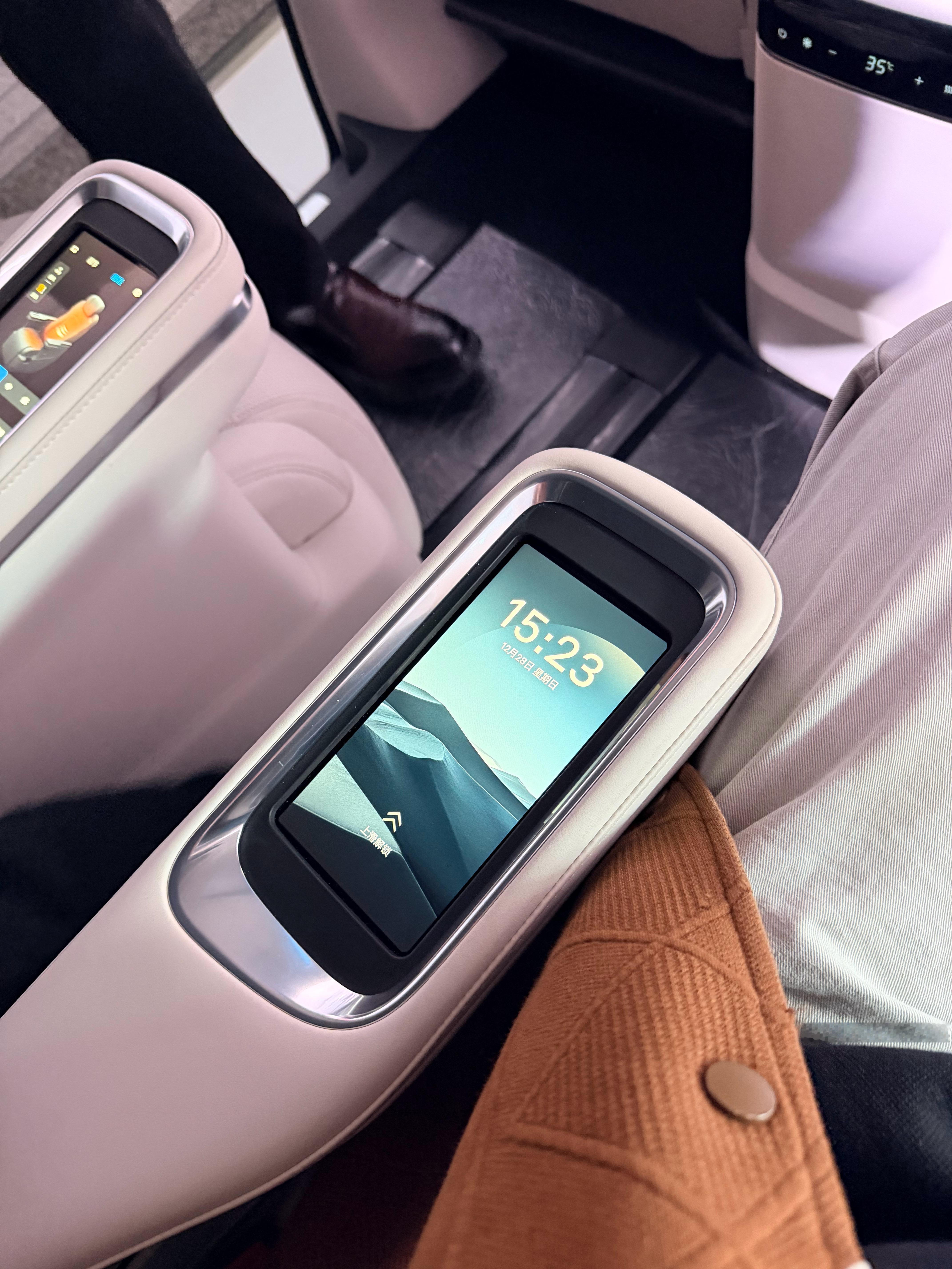 ai全场景家庭旗舰mpv今天来品鉴一下 吉利银河V900,它也是吉利银河旗下首款旗舰MPV,基于GEA Evo全球智能新能源旗舰架构打造,轴距达3200mm。进入内部,第一感觉就是大和宽,尤其是第二排的开门空间特别大,对于传统的三排MPV,吉利银河V900就有上下车便利的优势,第二排扶手位置有两个小屏幕可以调节座椅舒适功能,在前面有一个类似外接平板的接口,接口内部也有60w充电口。第三排是这次的重点,可以把它理解为正常座位。现场也有一位小姐姐跷二郎腿不是问题,此外除了常规的加热,它也有座椅通风等功能。可以把它的第三排理解为一个正常的座椅,空间舒适度是我目前见过最全面的MPV!还有冰箱彩电大沙发这也都有。辅助驾驶系统千里浩瀚H5,小蓝灯也给大家拍出来了,在车灯尾部。动力上,吉利银河V900采用叠竖布局增程电驱系统,前后双电机四驱,搭载宁德时代骁遥电池包,CLTC纯电续航240km,满油满电综合续航可达1200km,同时支持18分钟快充。阿远说车