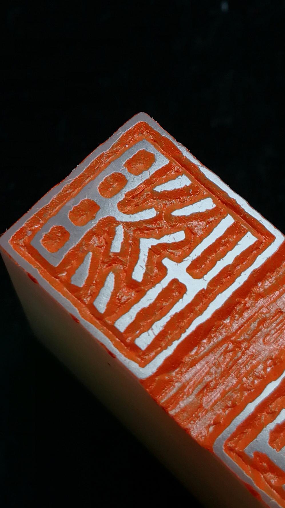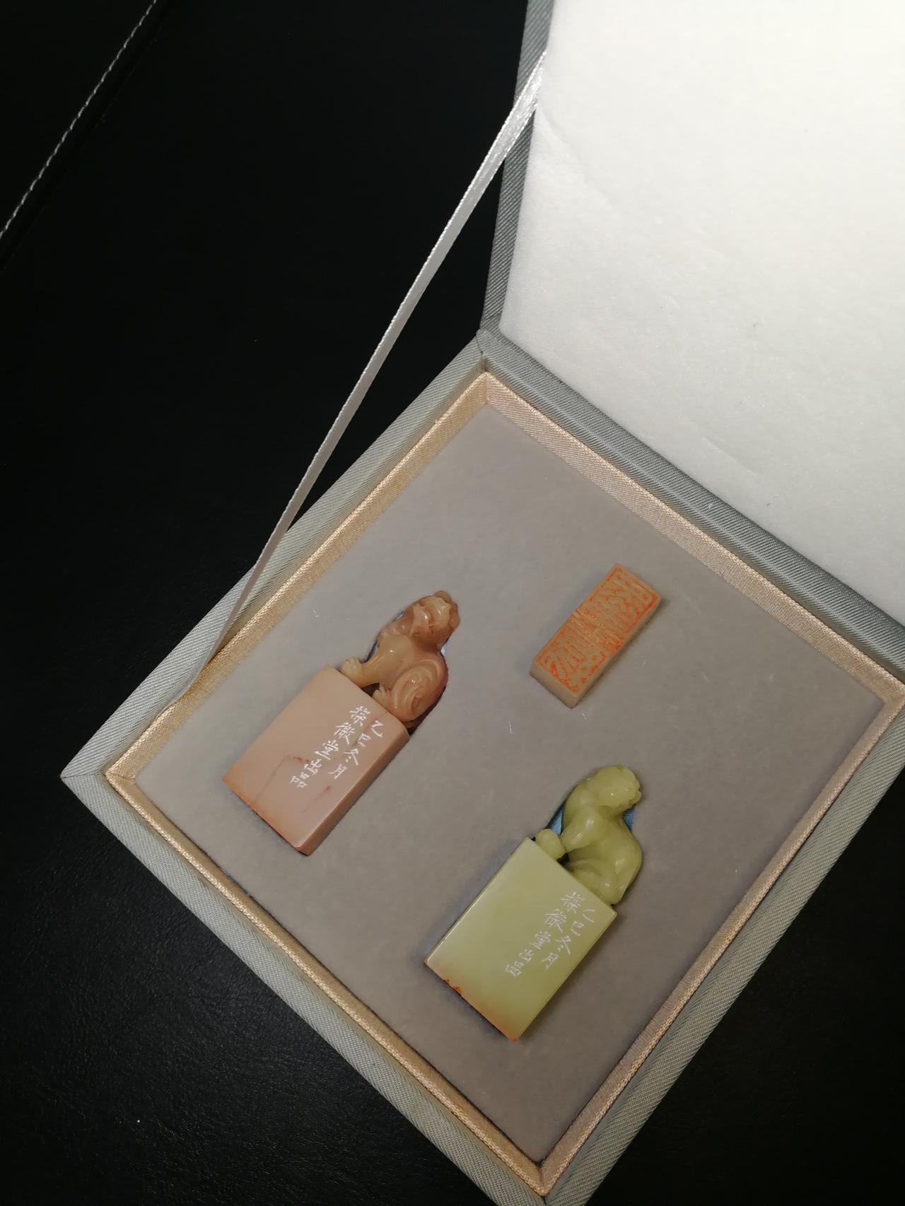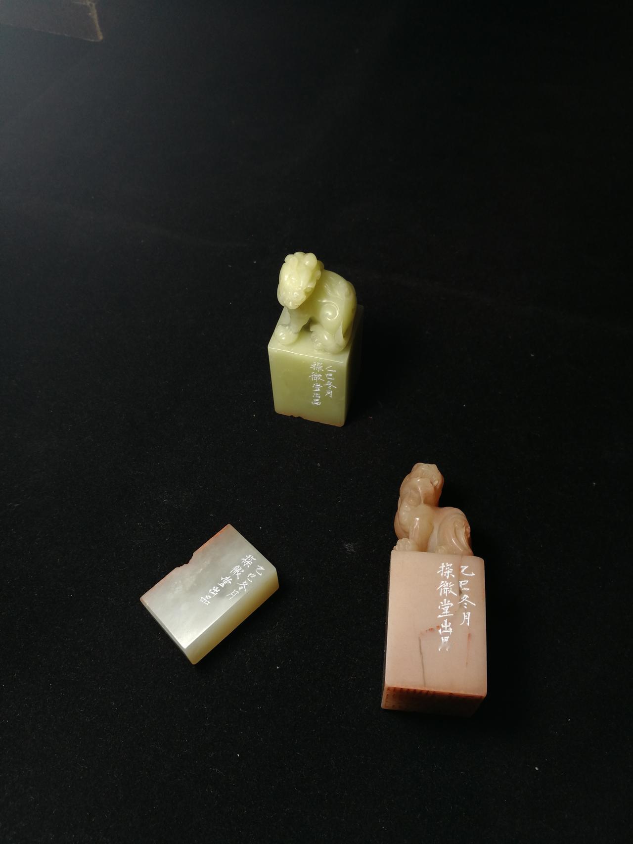 粉丝嘱托刻印章一套,由资深学员完成,我审稿。看着学生们都可以独当一面了,为师也是比较欣慰的,起码有了个吃饭的手艺,规规矩矩,不是乱来。 均拟浙派切刀风格,释文: 王建英印,白文,2.5*2.5 墨缘,联朱,1.3*3.3 锦情义茂,朱文,2.4*2.4 书画印章 书法 篆刻 礼物 艺术品
